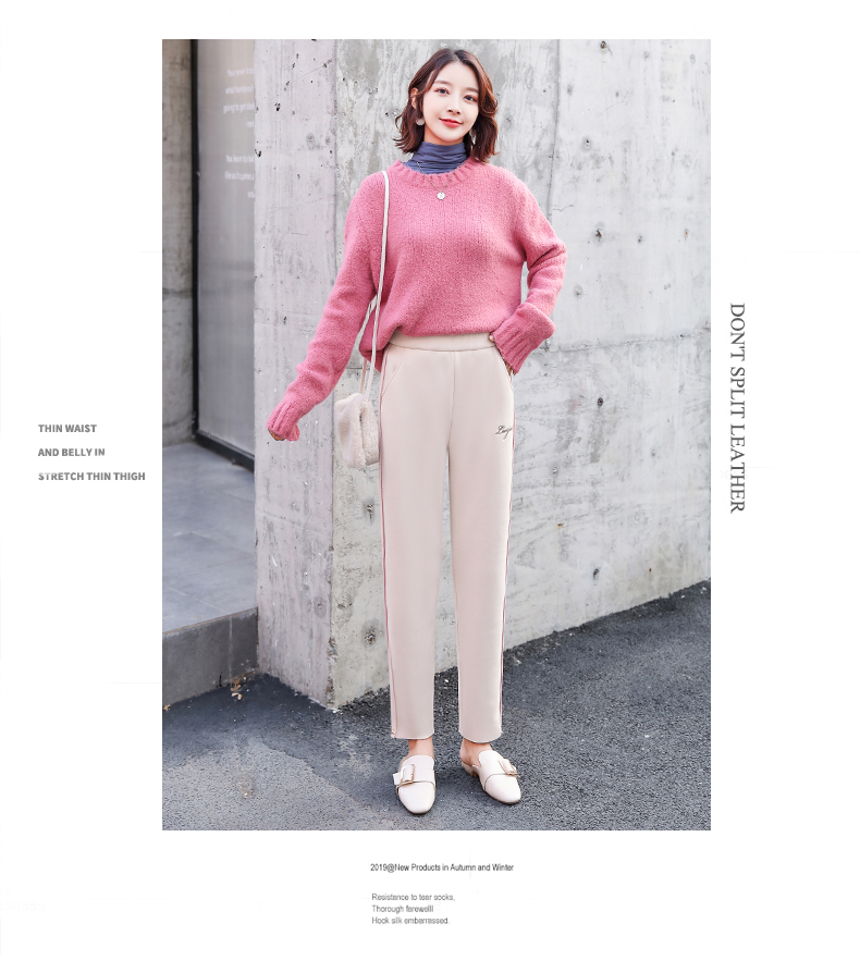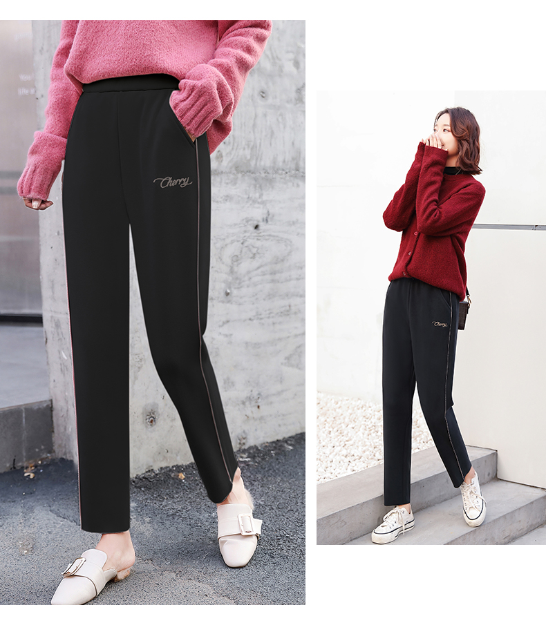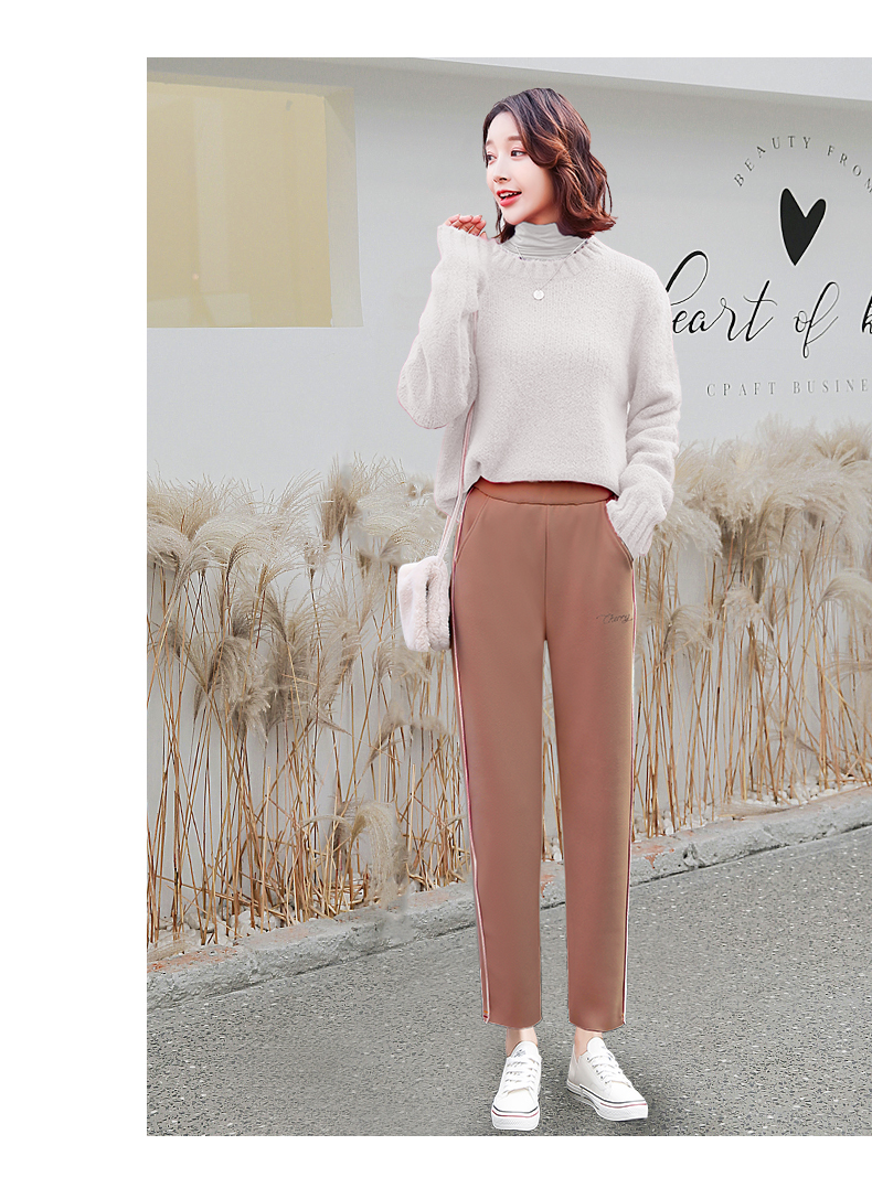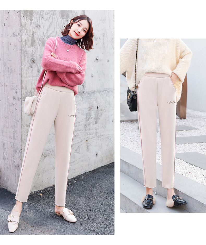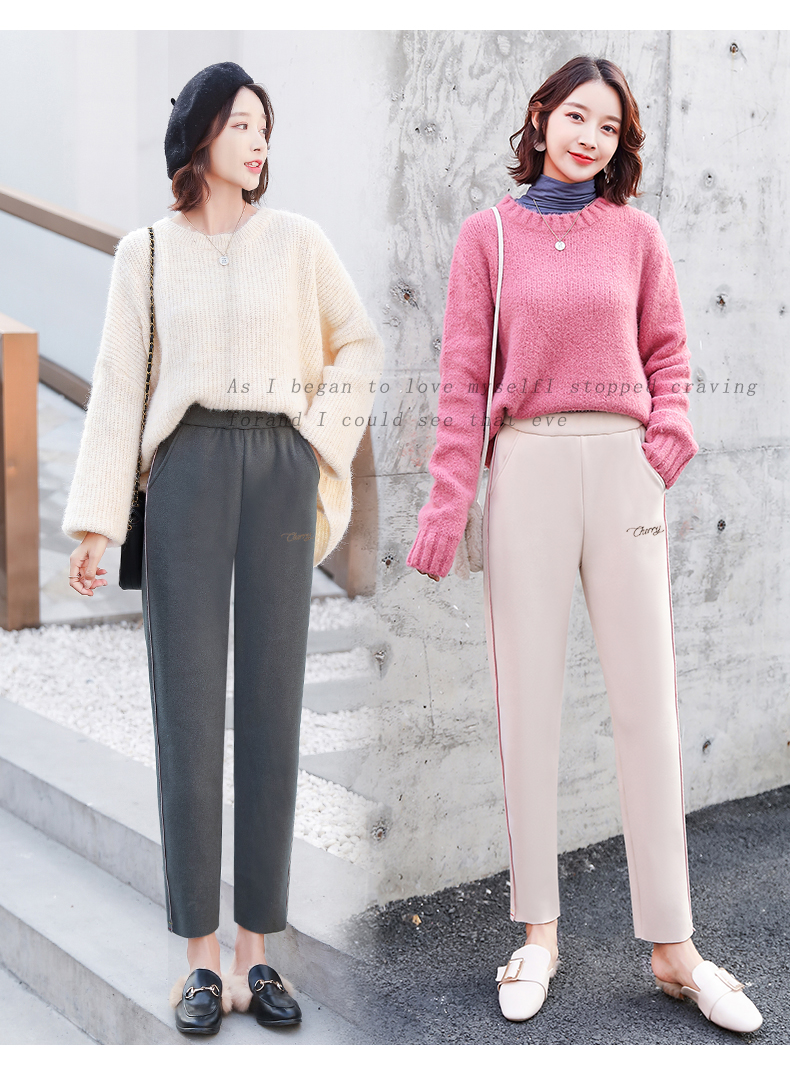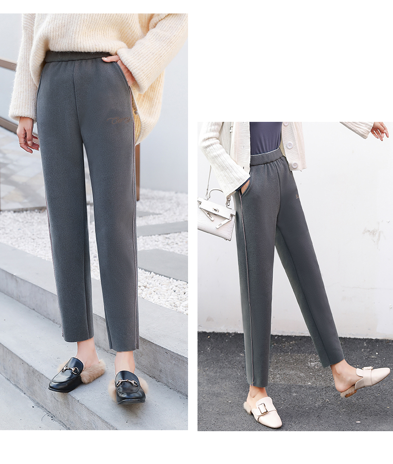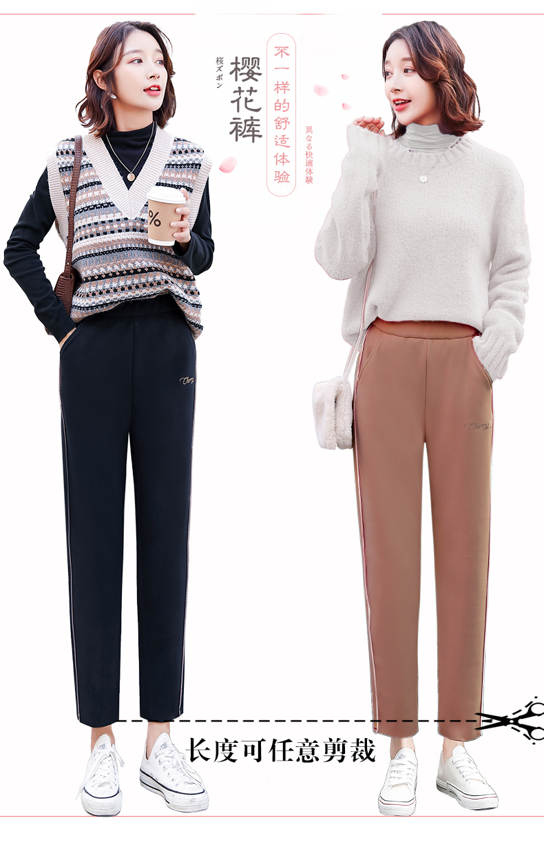 樱花奶奶裤女日系2019新款秋冬加绒加厚保暖润肤毛呢哈伦萝卜裤