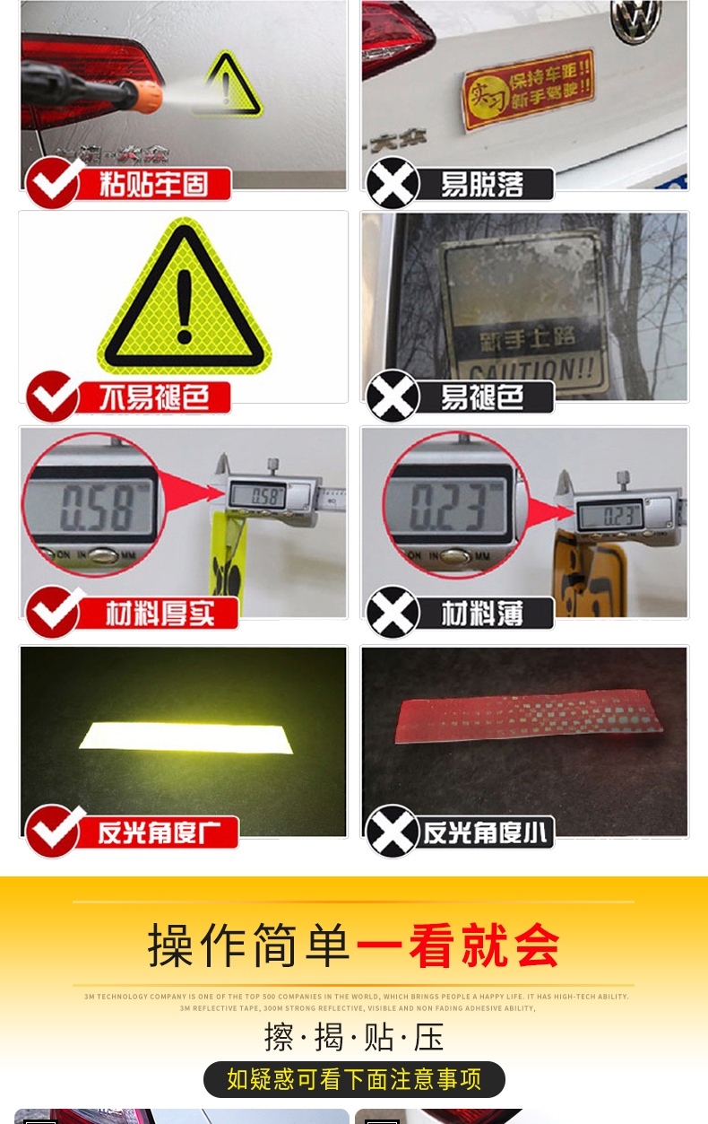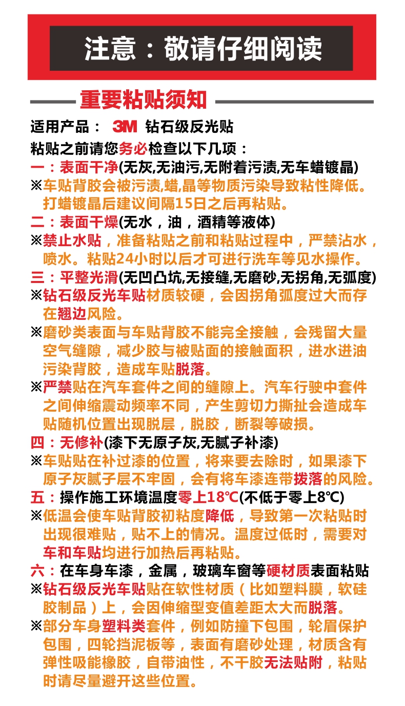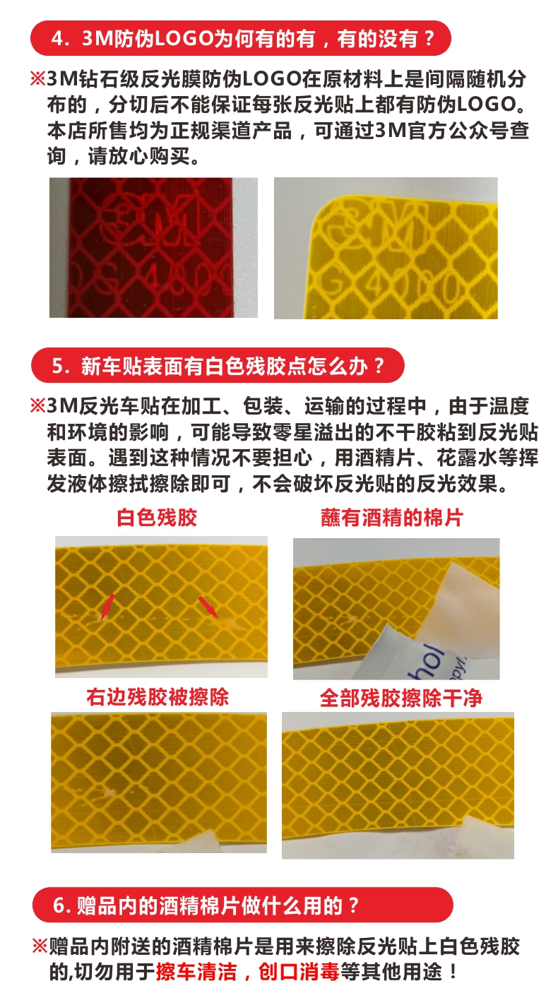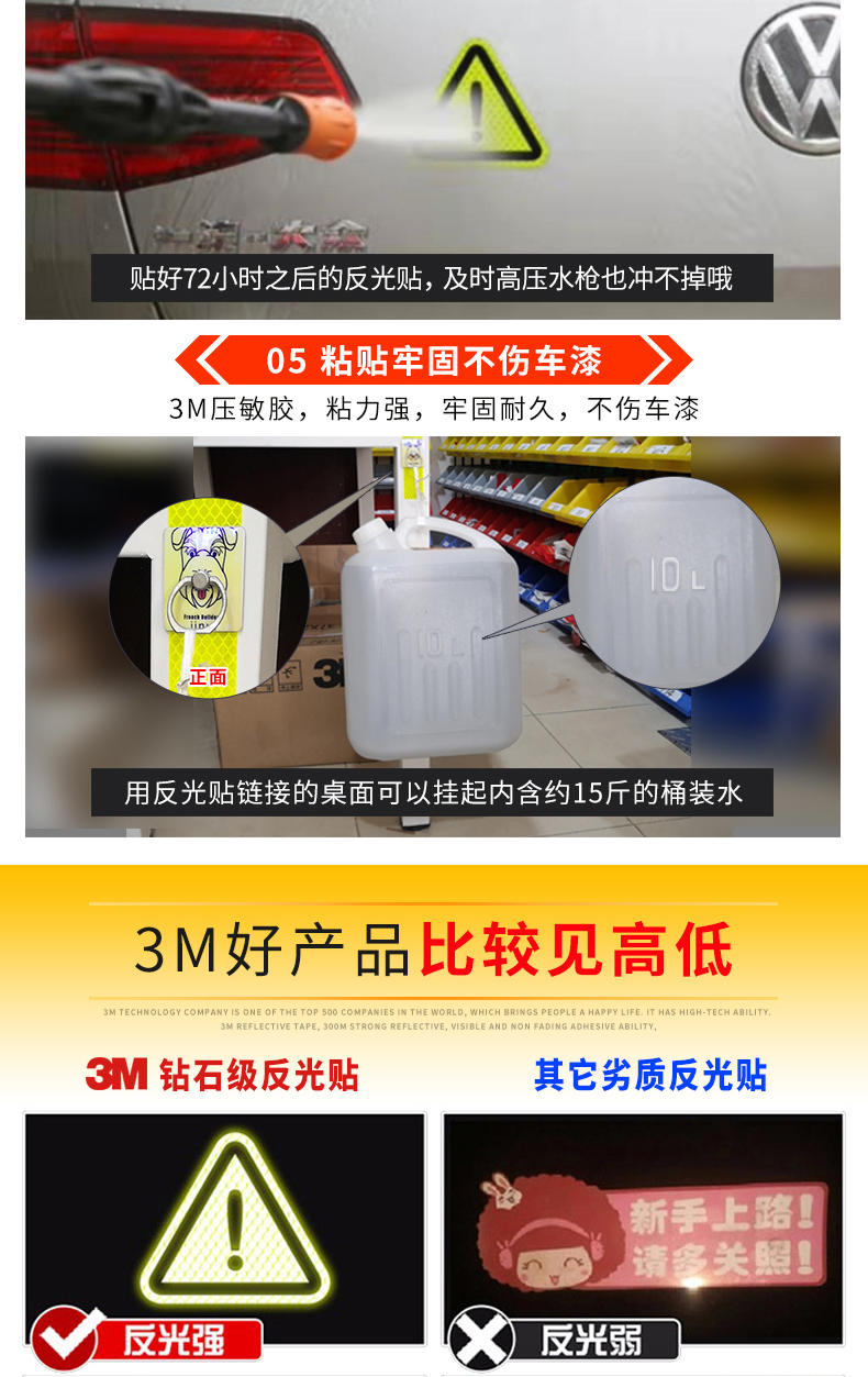 【拍一发三】采用3M.DG3钻石级反光膜制作,自带背胶,即贴即用,操作简单。广角度反光警示,超强反光,专治远光狗,保障夜晚行车安全。