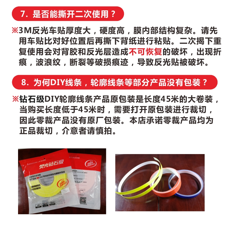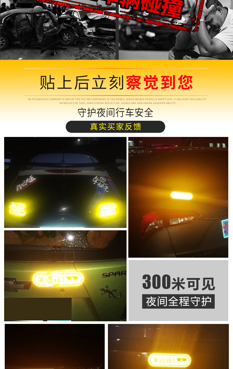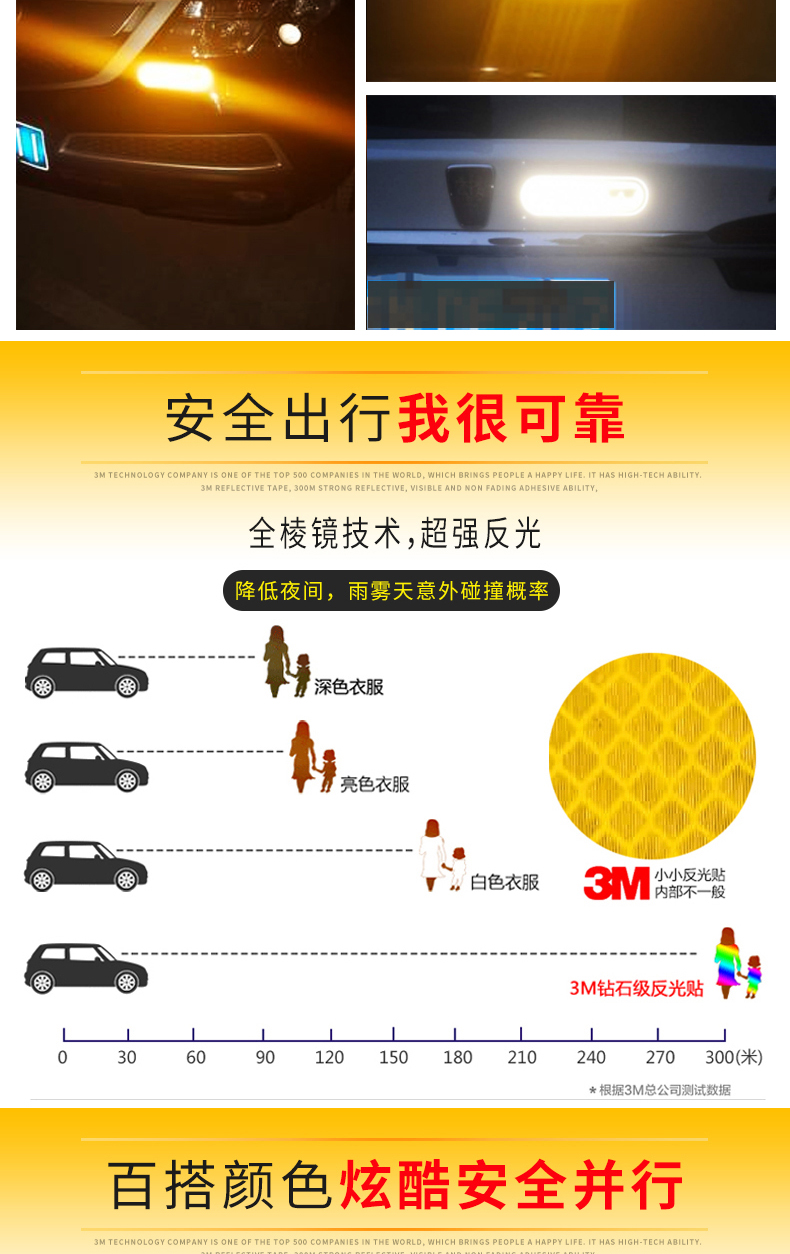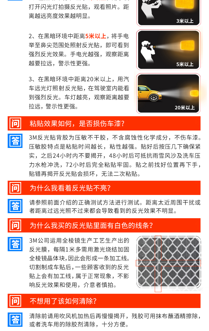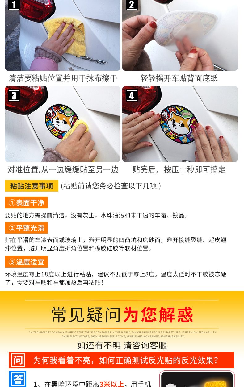 【拍一发三】采用3M.DG3钻石级反光膜制作,自带背胶,即贴即用,操作简单。广角度反光警示,超强反光,专治远光狗,保障夜晚行车安全。