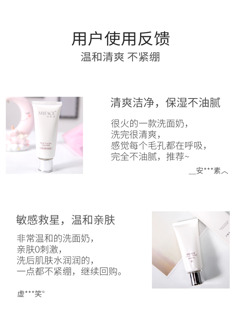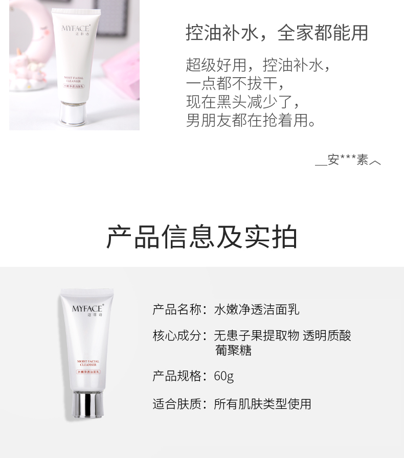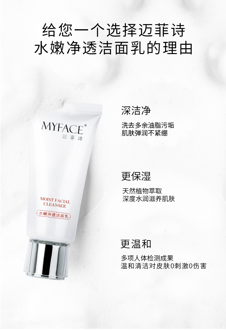 MYFACE迈菲诗水嫩净透洁面乳洗面奶女男黑头粉刺深层清洁温和控油