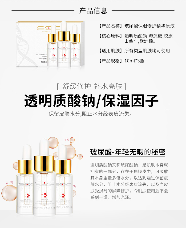 ESC玻尿酸保湿修护原液面部精华液保湿补水收缩毛孔