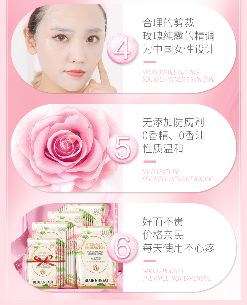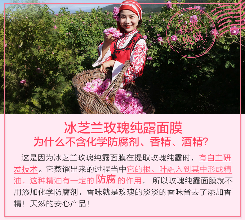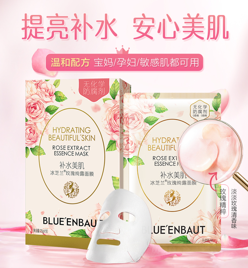 冰芝兰玫瑰纯露000面膜贴补水保湿提亮肤色男女士学生敏感肌10片