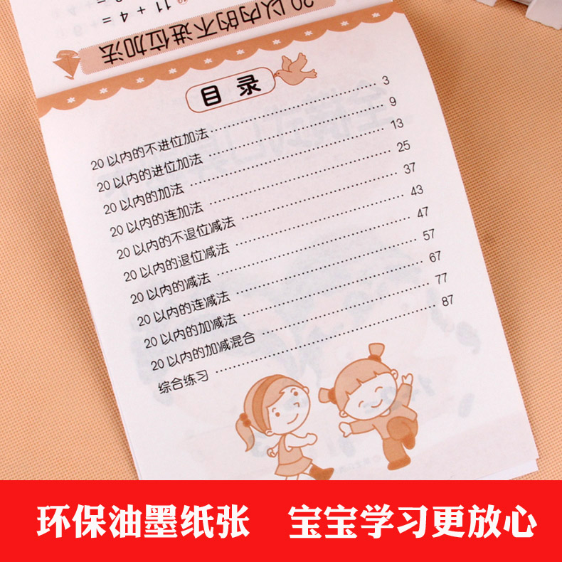 全横式口算题卡20以内加减法一年级上册天天练幼儿园中大班数学题练习册儿童学前班二十以内数的算术 幼儿园学前班幼小衔接教材