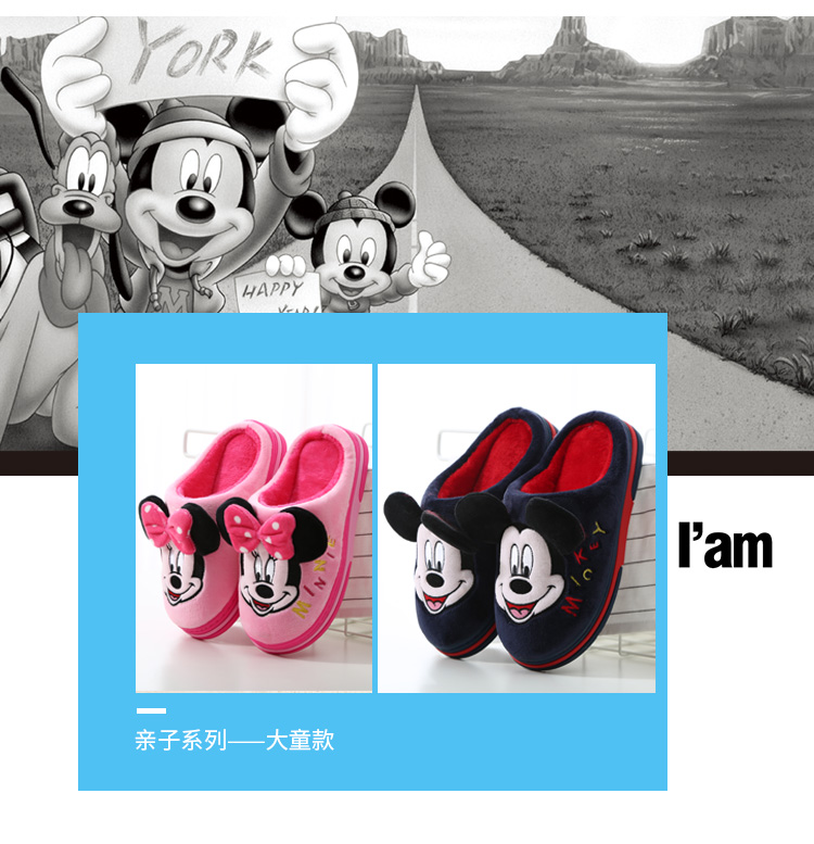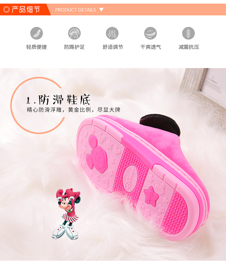 迪士尼冬天女童男童可爱小孩幼儿婴儿婴幼儿男孩小女孩儿童棉拖鞋