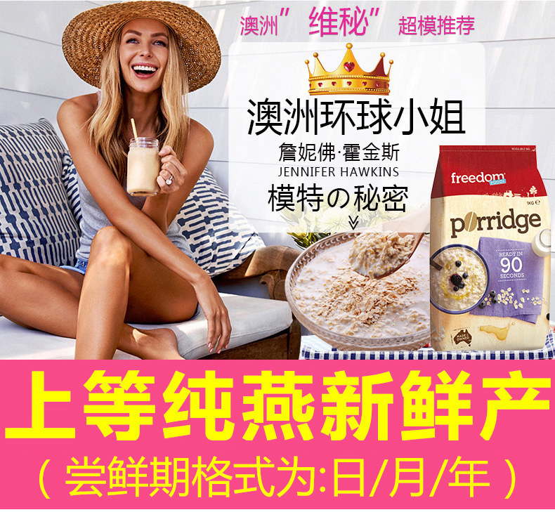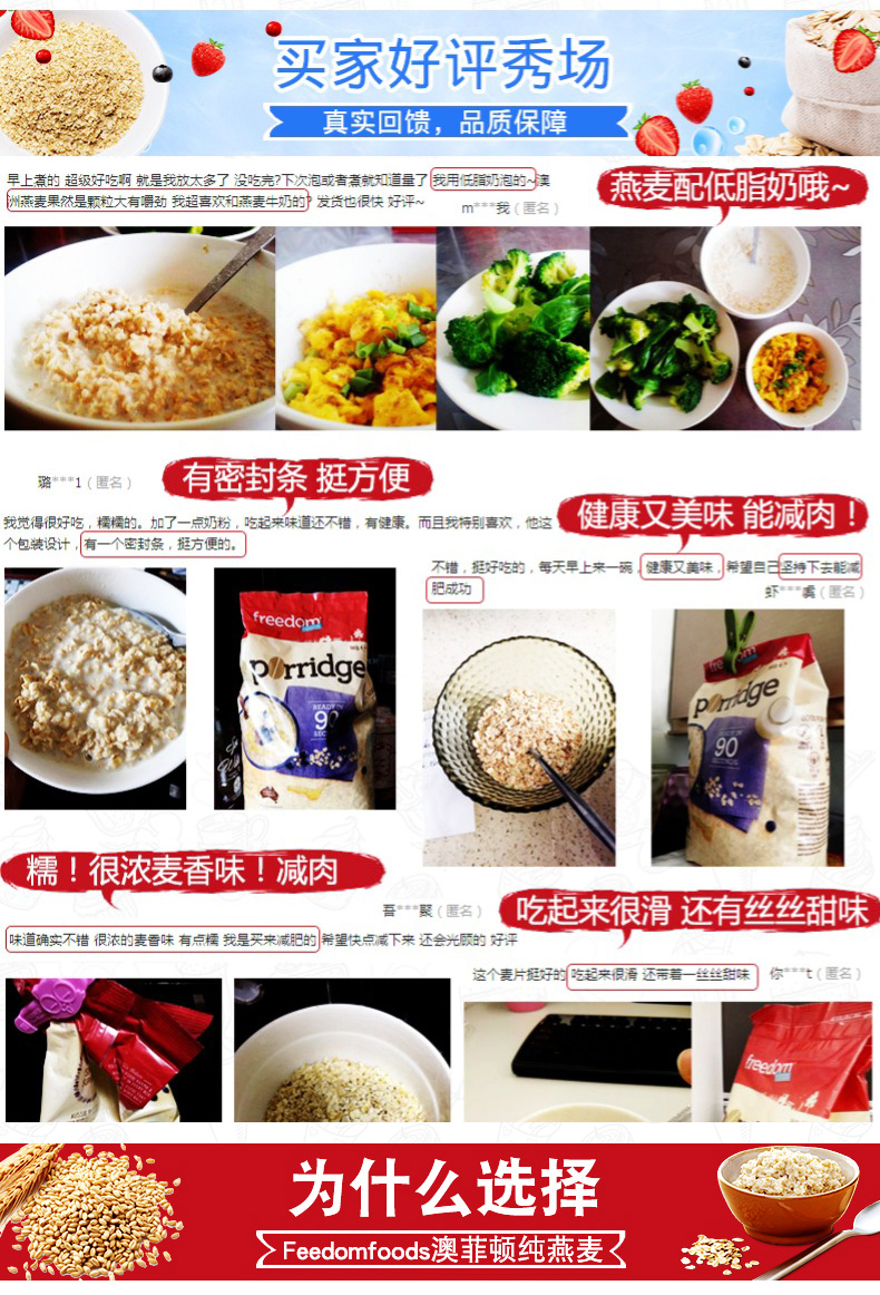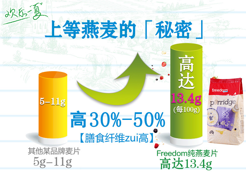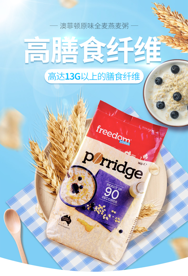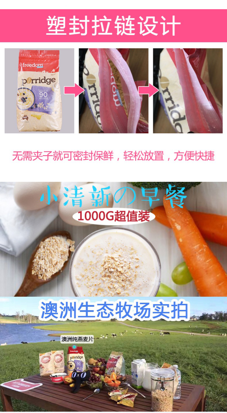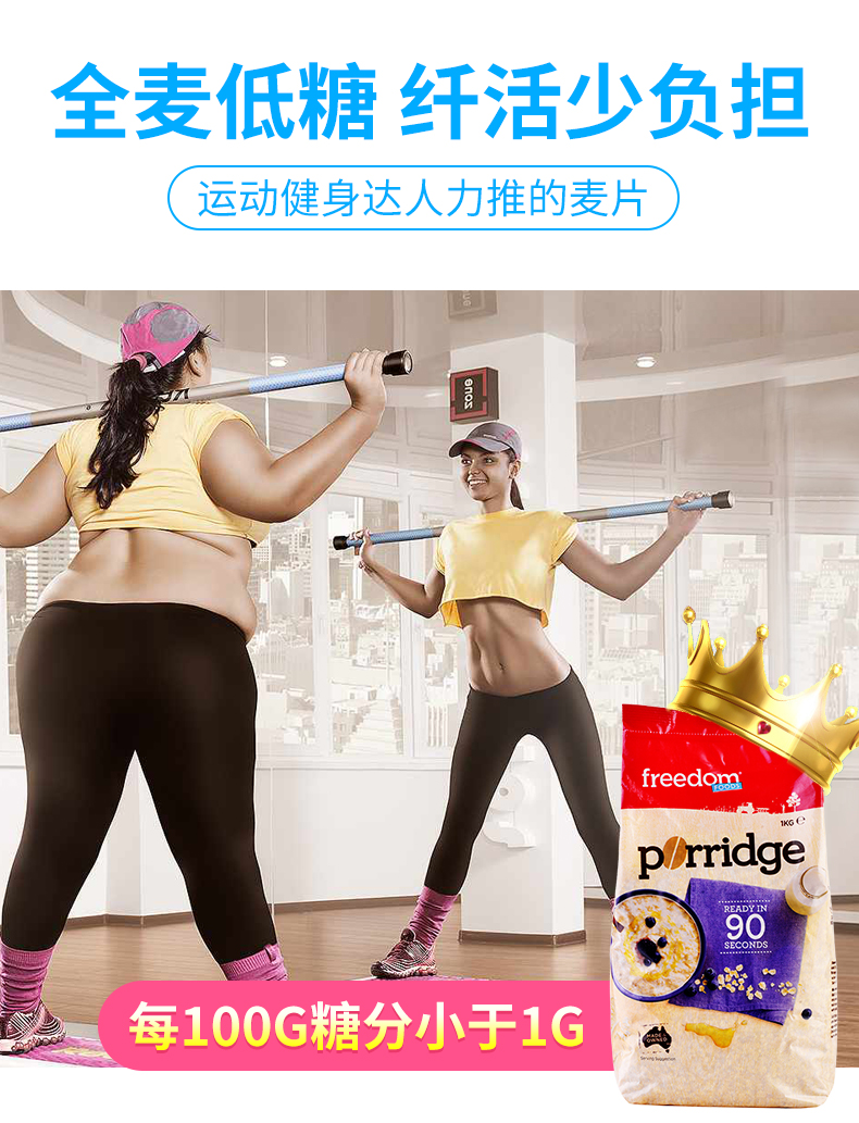 freedom燕麦片 即食 无糖 脱脂早餐低脂谷物代餐速食原味纯麦片粥