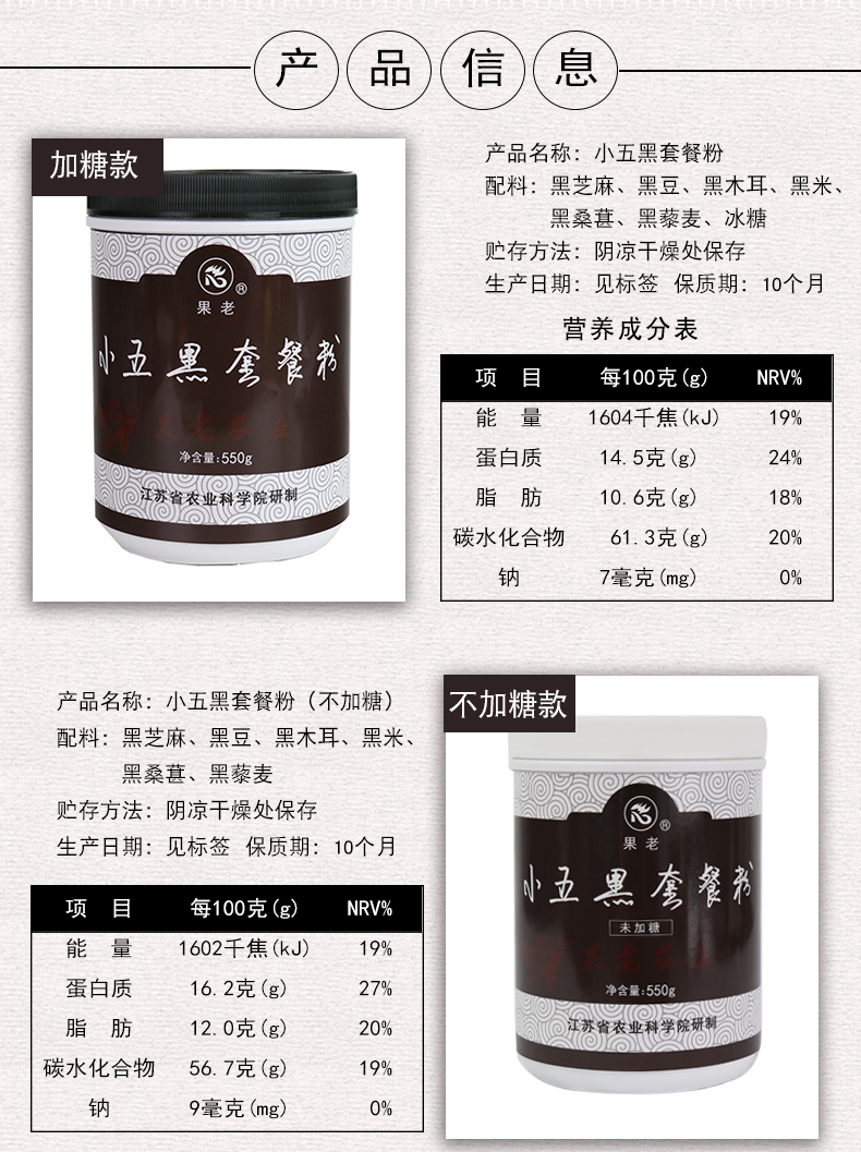 果老黑芝麻黑豆粉小五黑粉黑芝麻糊黑木耳黑桑葚黑色食品五谷代餐