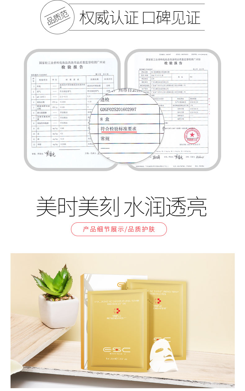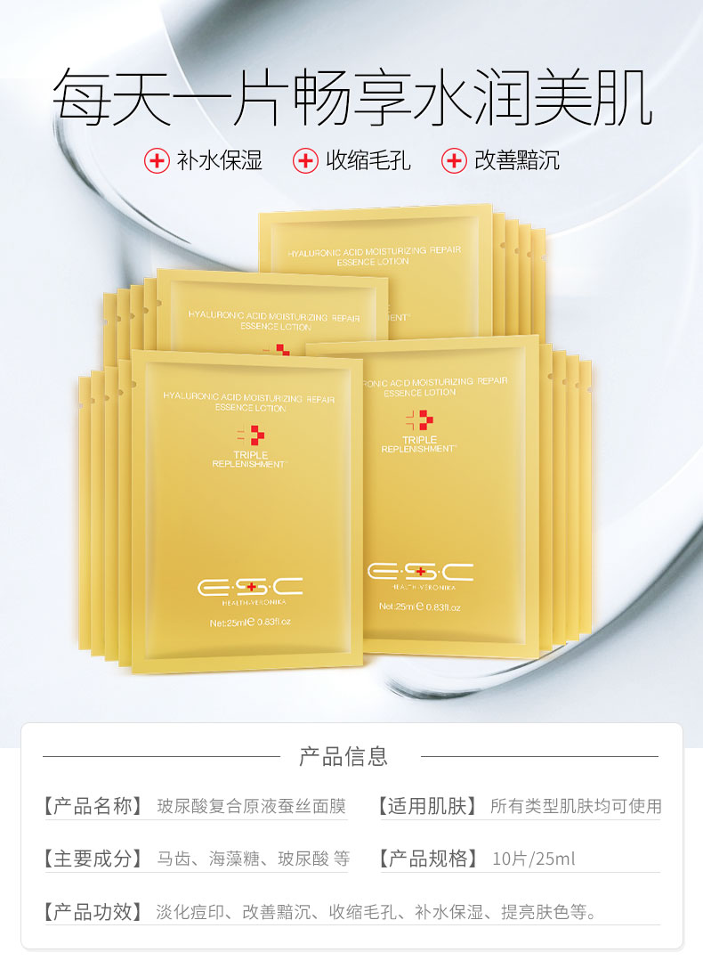 ESC玻尿酸原液蚕丝面膜天丝补水保湿滋润收缩毛孔深层清洁正品