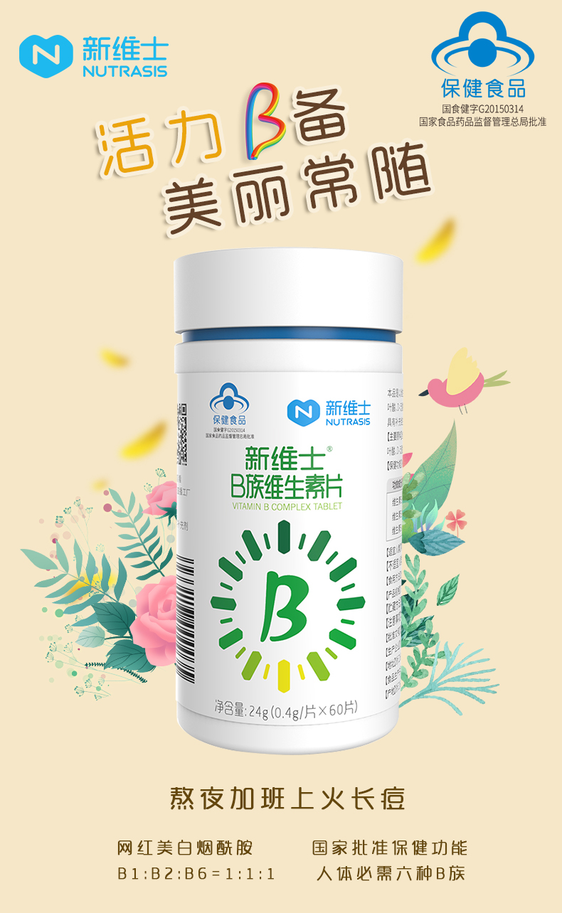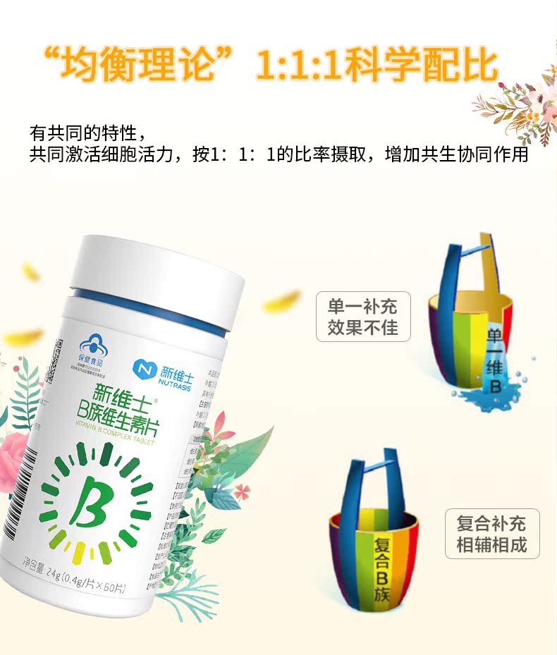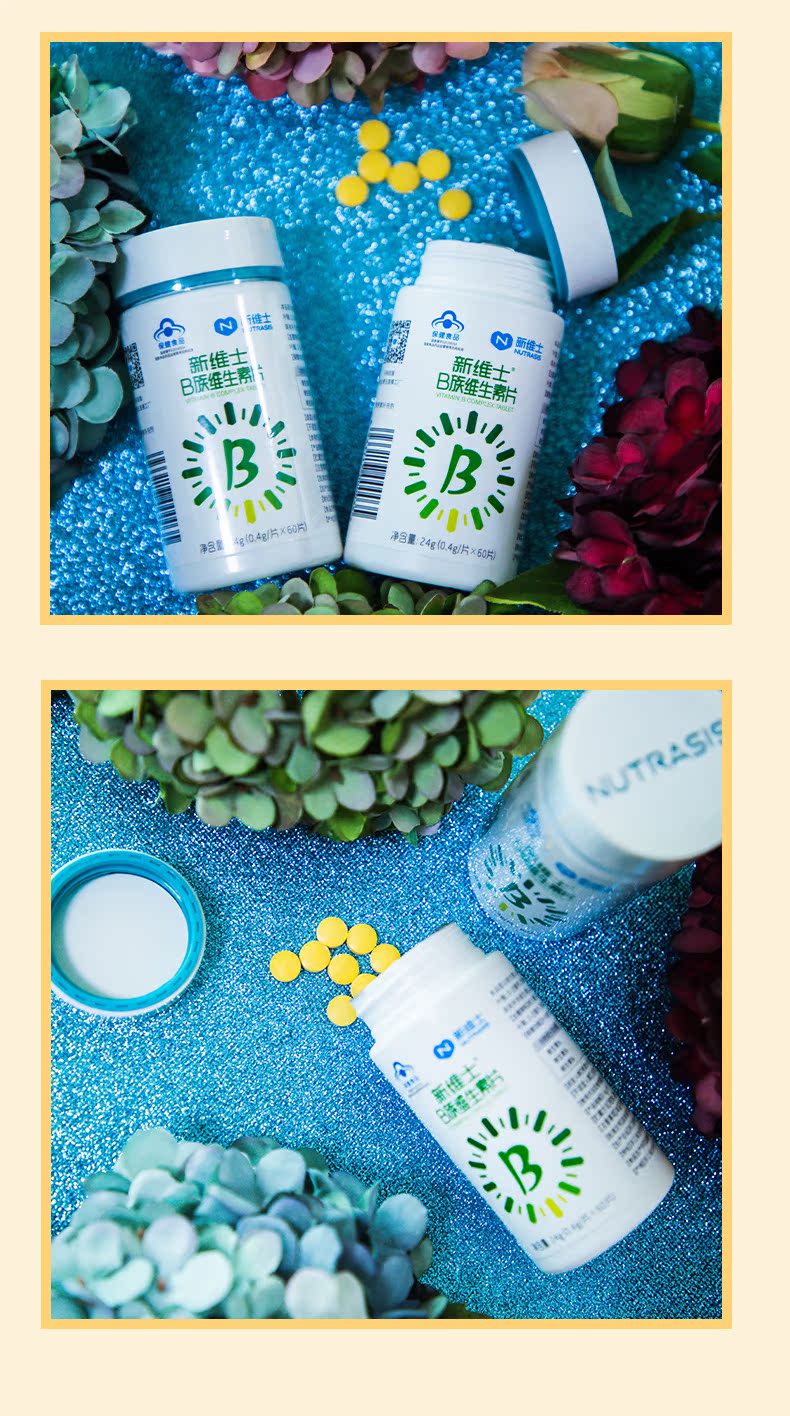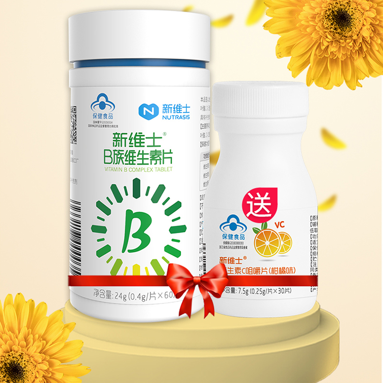 新维士B族维生素b1b2b6共120片+维C30片+益生菌6条熬夜加班应酬备