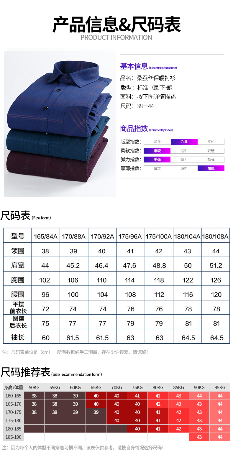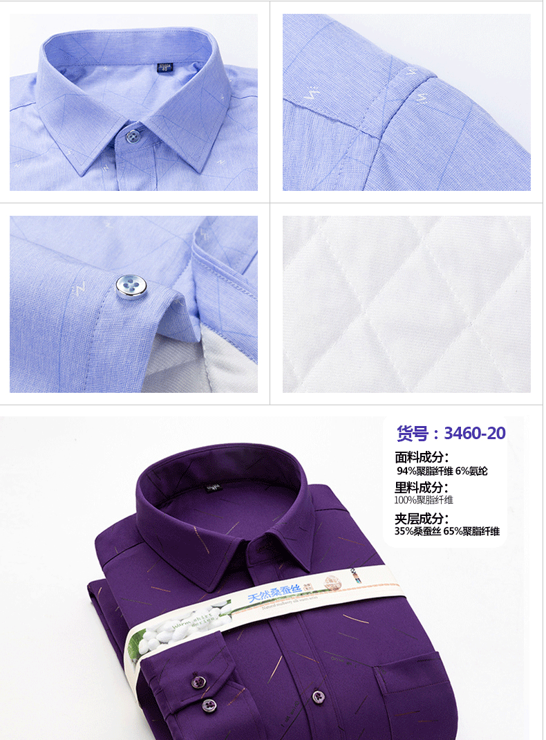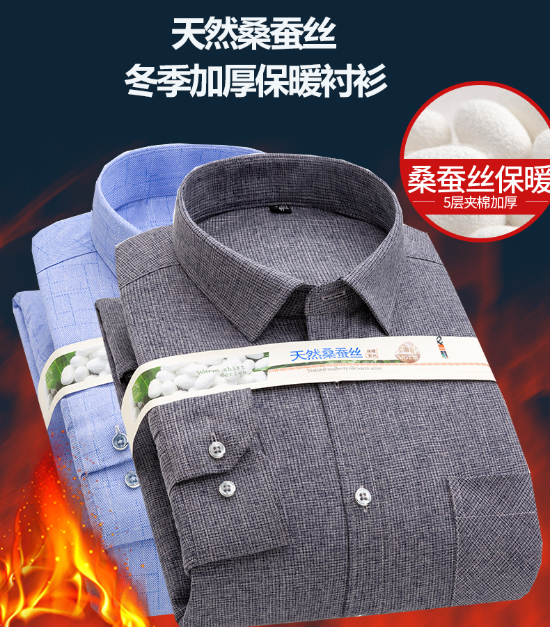 经典中老年保暖衬衫,商务休闲有型,桑蚕丝内胆加厚保暖,采用天然桑蚕丝,多层夹棉,超保暖