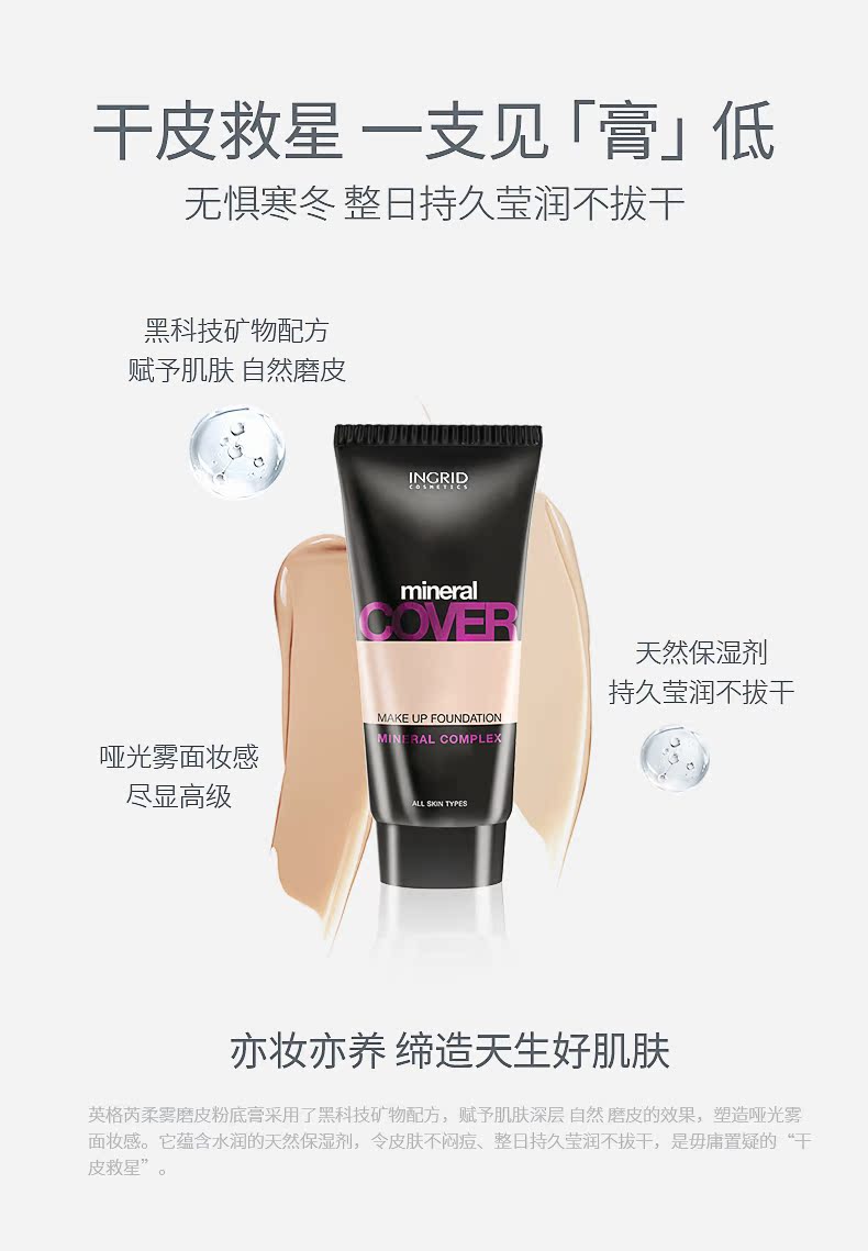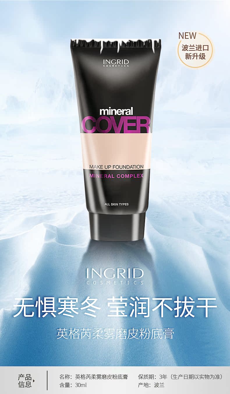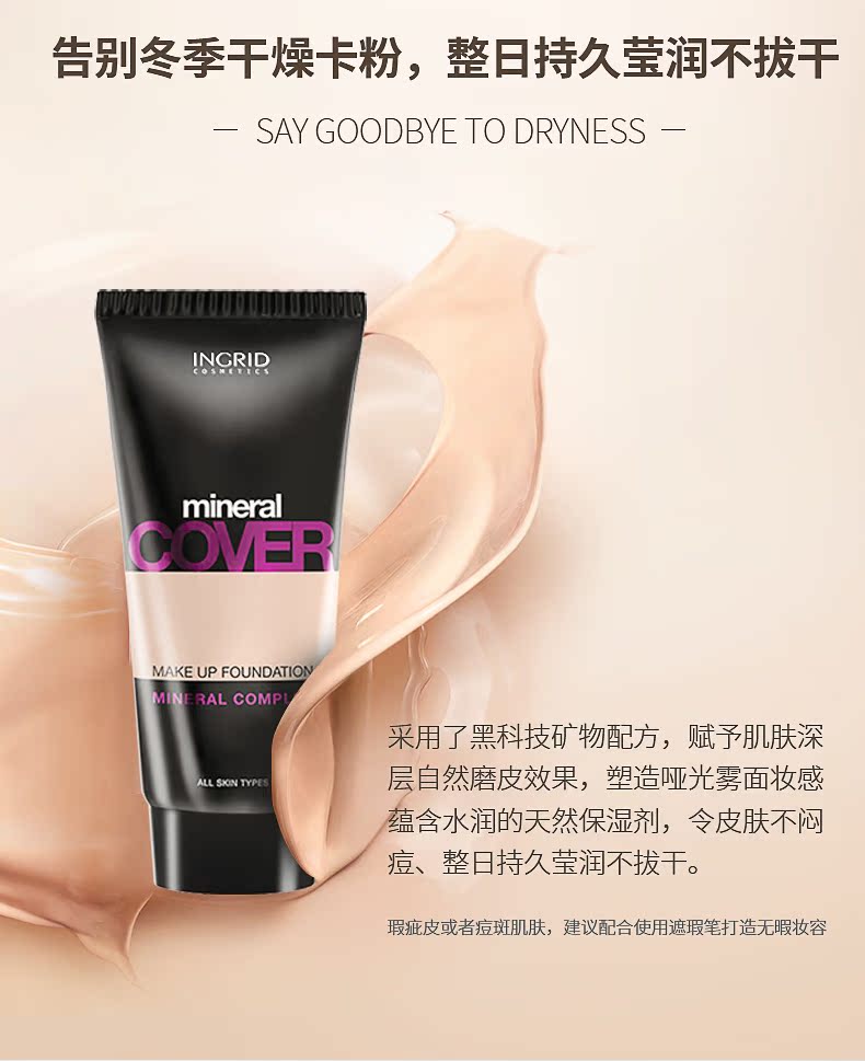 波兰INGRID英格芮遮瑕粉底液滋润保湿持久遮盖男女粉底膏不脱妆