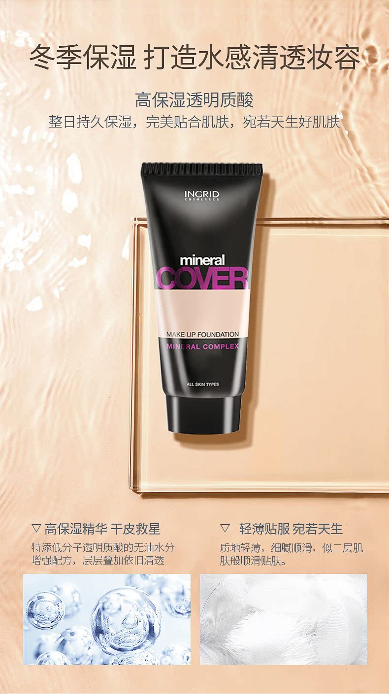 【INRGID海外旗舰店】线下屈臣氏专柜有售!高端大气!符合多种肤质的不脱色遮瑕粉底液,强大保湿嫩白效果,水润透亮给你,轻轻一抹,让你轻松变女神~~【赠运费险】