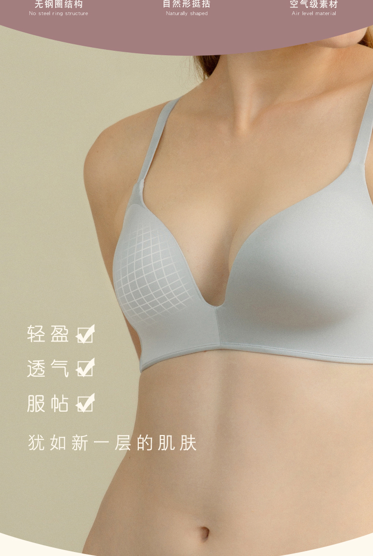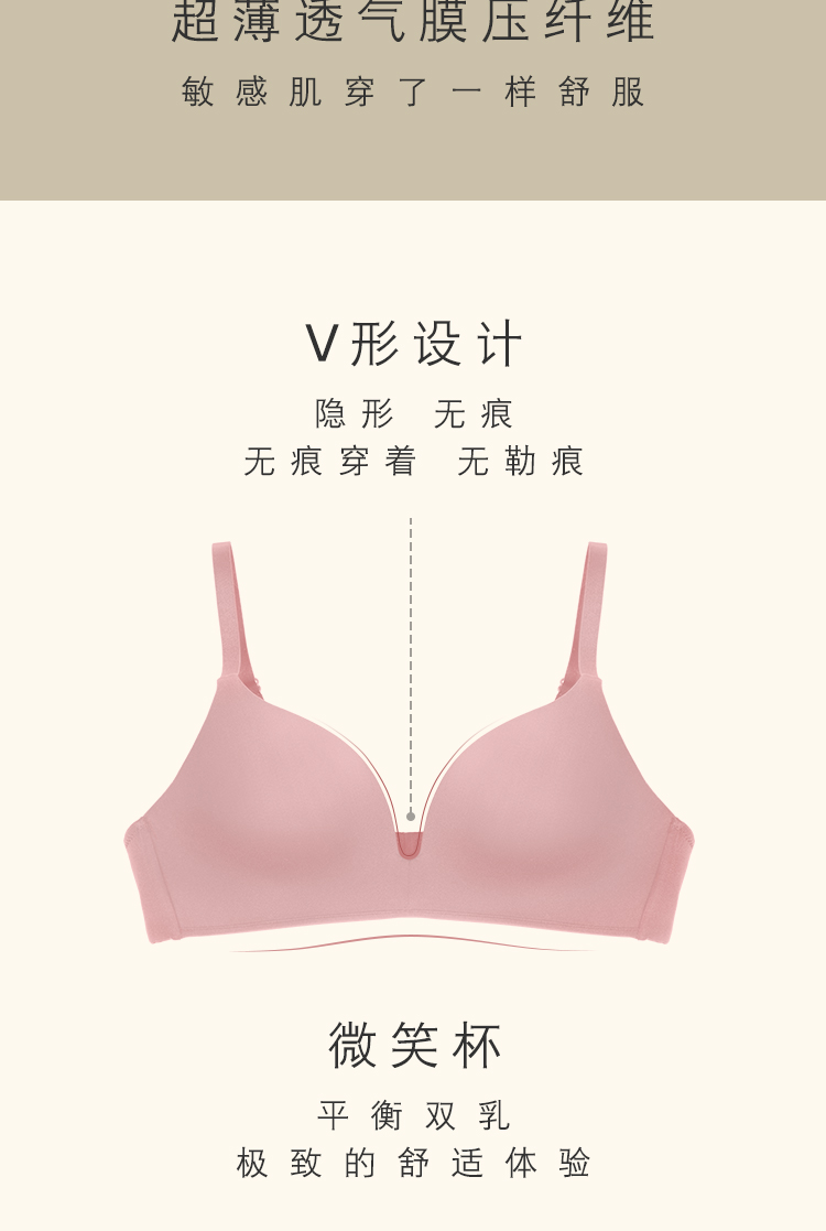 怀果新概念舒适文胸,0.4CM超薄罩杯,无钢圈结构,自然型挺括,空气级素材,轻盈、透气、服帖!敏感肌穿着一样舒服!