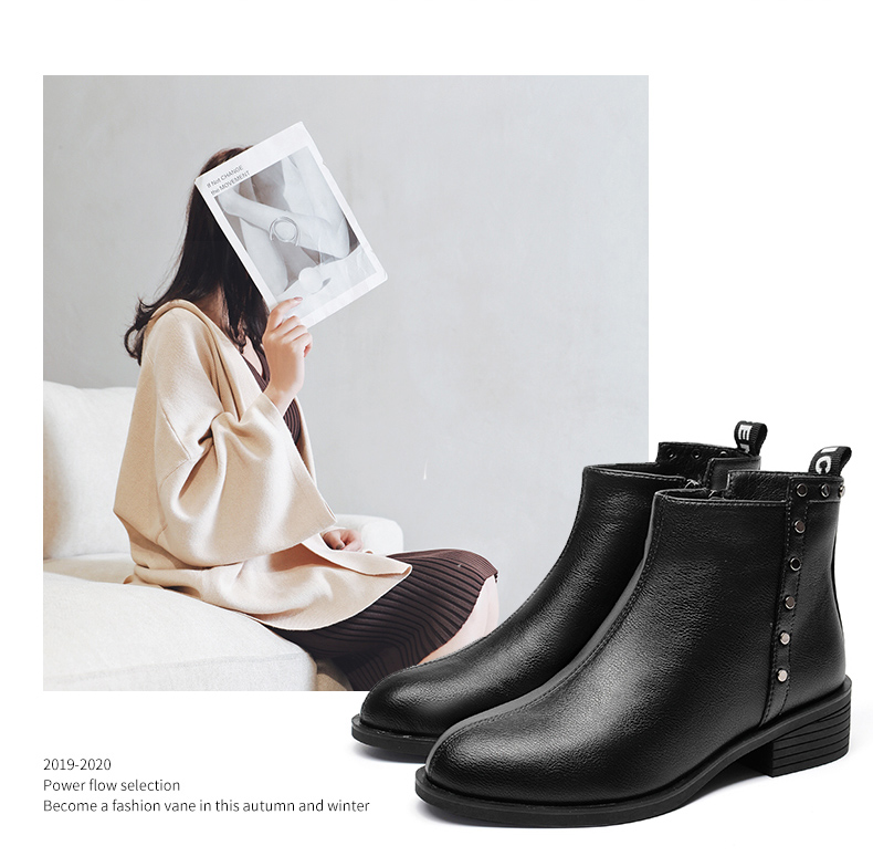 【直播专享】卓诗尼女鞋2019冬新款显瘦圆头复古英伦靴侧拉链踝靴