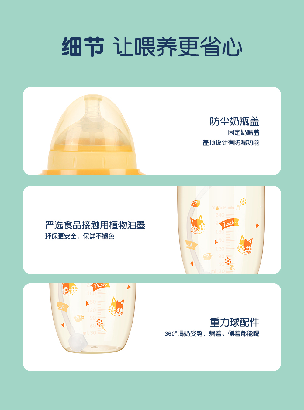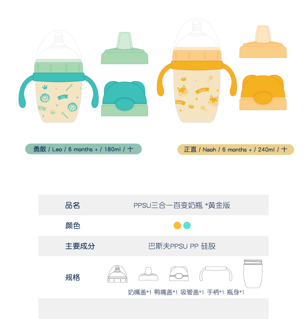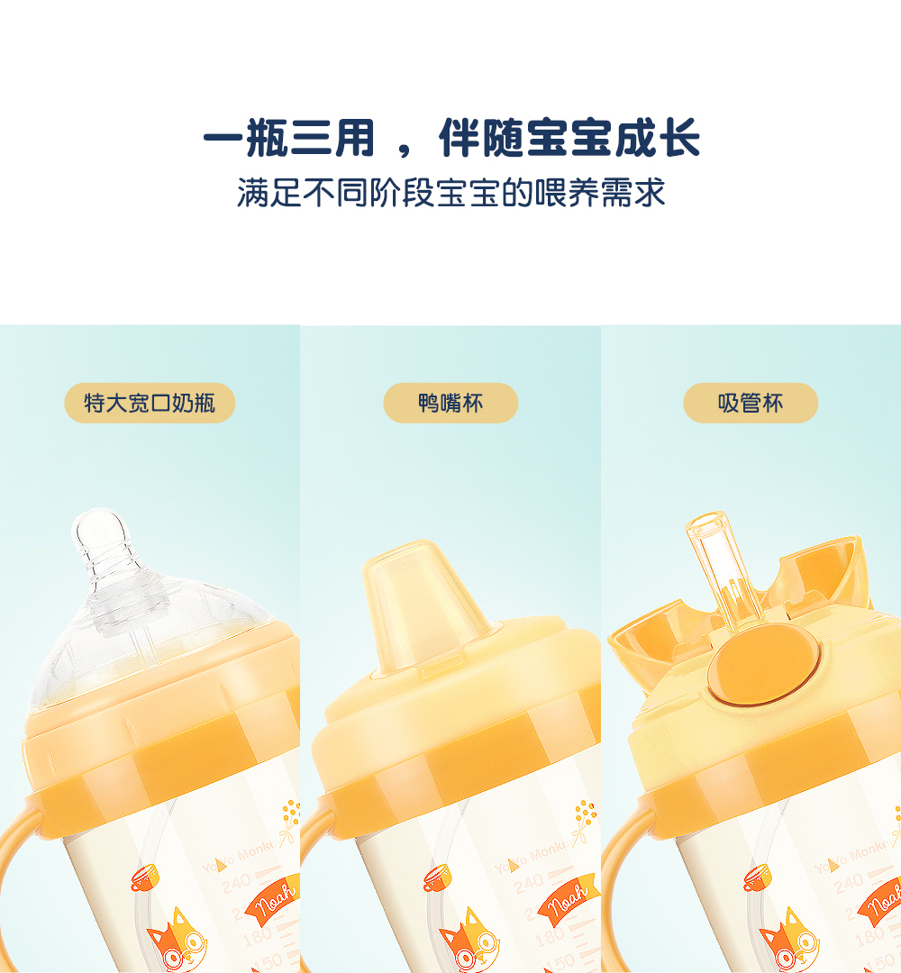 香港优优马骝PPSU奶瓶,一瓶三用,新生儿吸管水杯宝宝婴儿防胀气,进口德国巴斯夫PPSU材料,完美过度