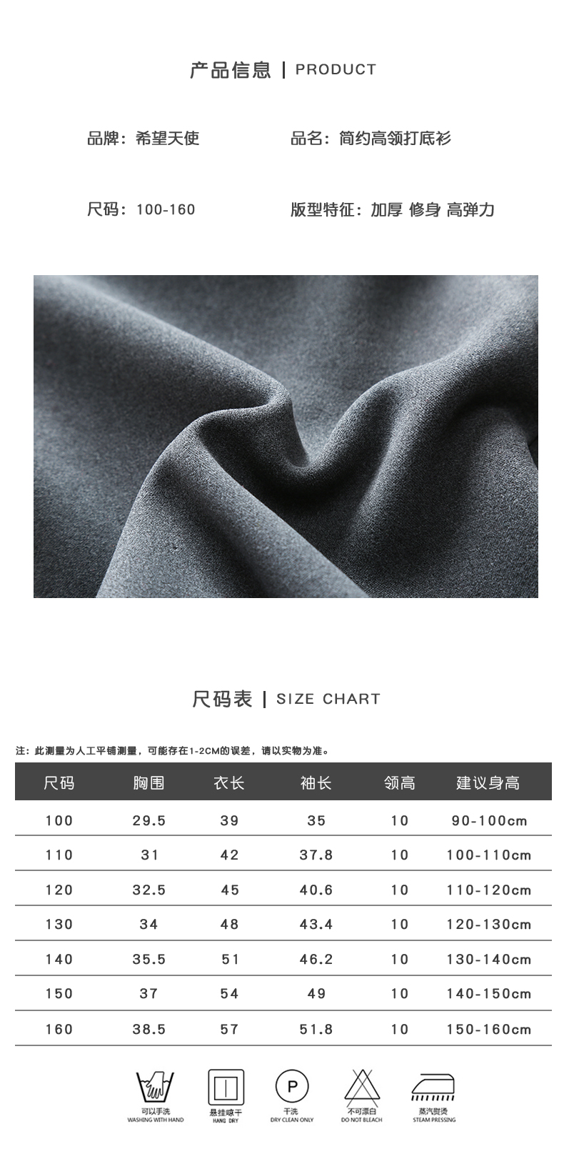纯棉面料,高弹亲肤,高领设计,加绒加厚,防风保暖,让宝宝洋气又时尚,冬季一件顶多件~【赠运费险】