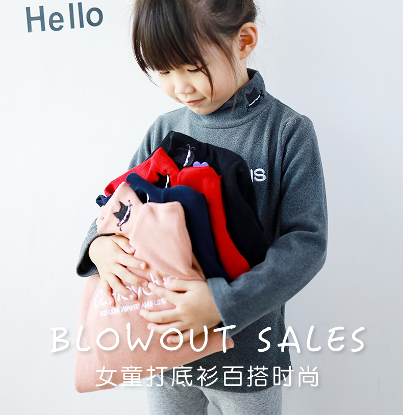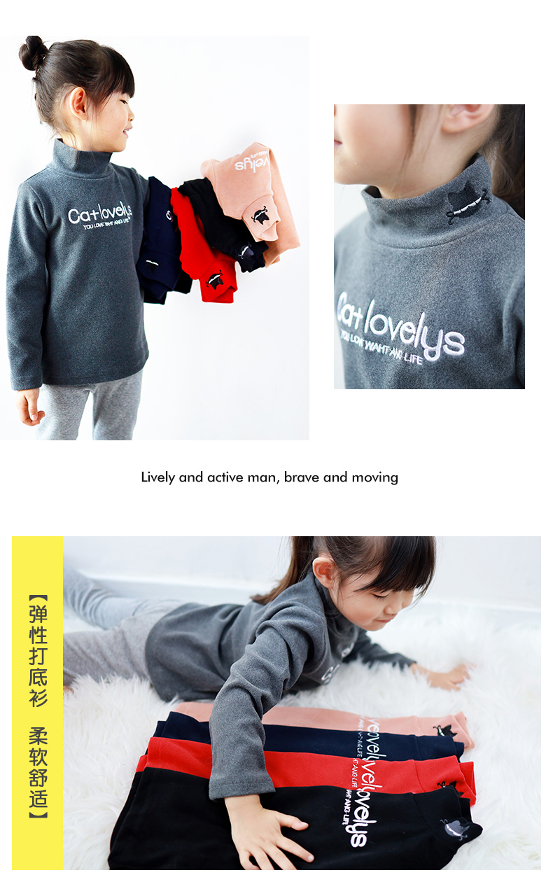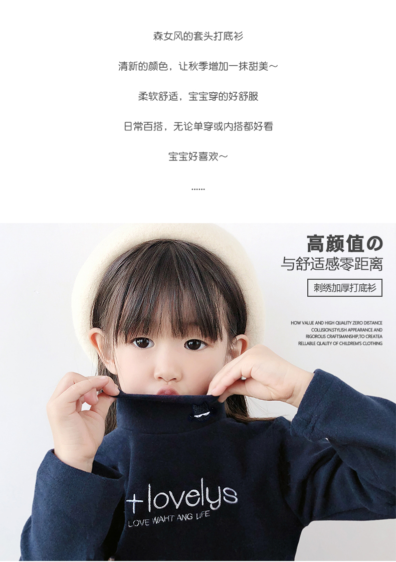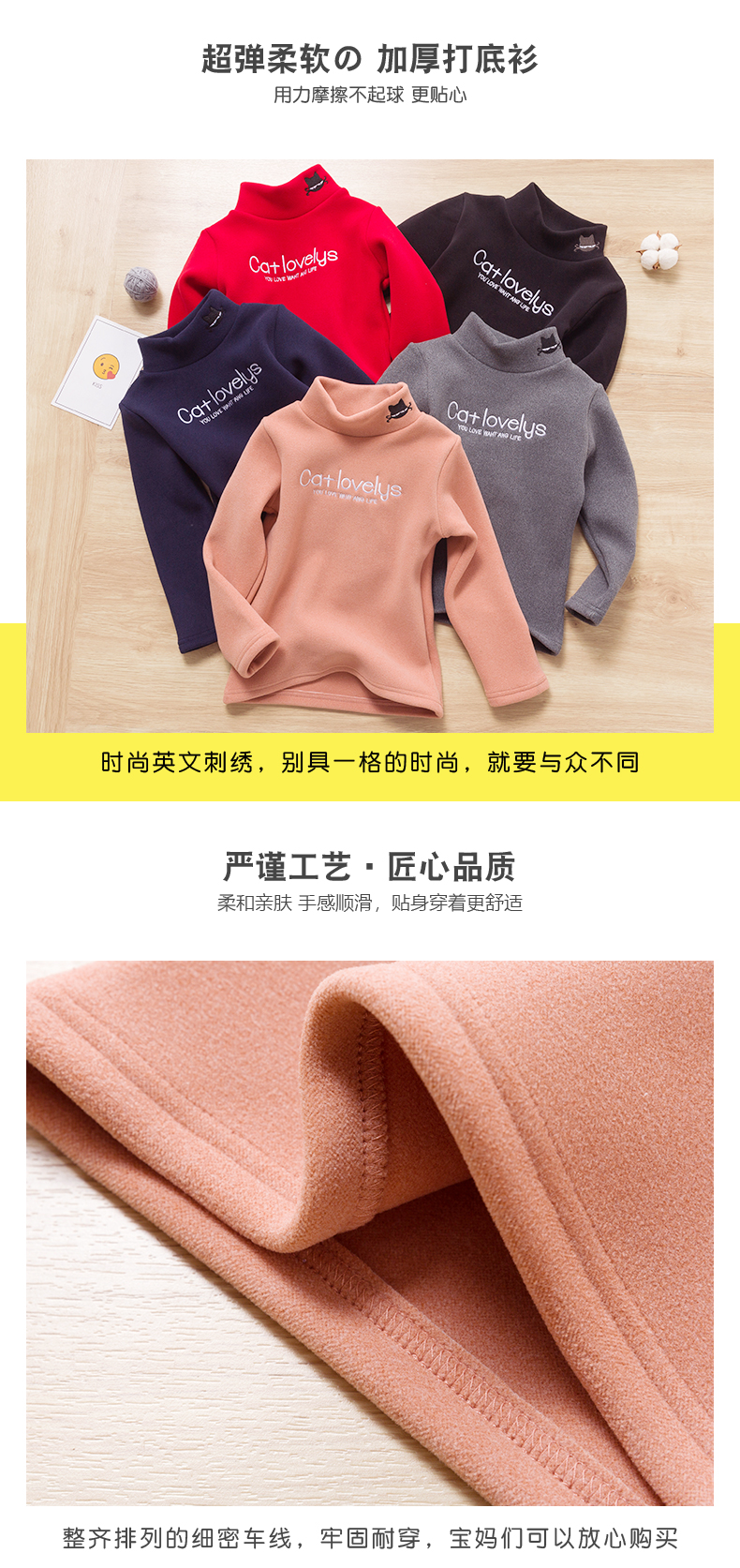 女童打底衫洋气高领宝宝新款秋冬装加绒上衣儿童t恤长袖男童加厚