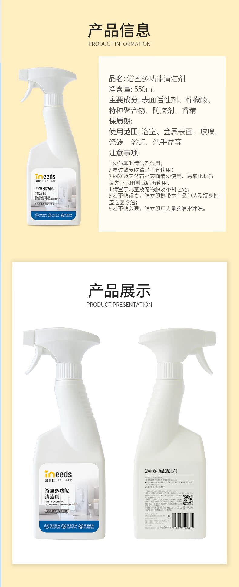 浴室玻璃清洁剂550ml,家用除垢擦窗,强力快速去污,洁净如新,操作方便,无需冲水,双效喷头,省时省力,一瓶在手搞定家里所有~