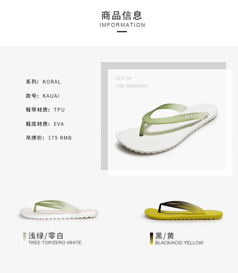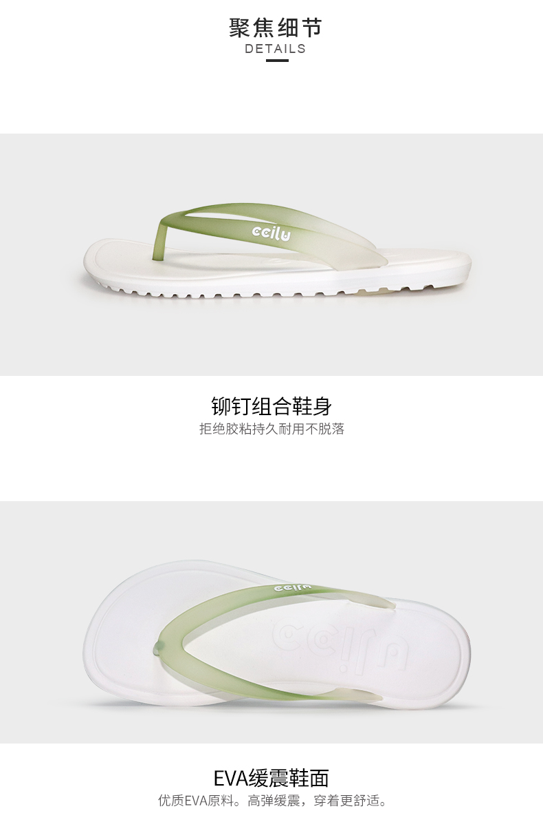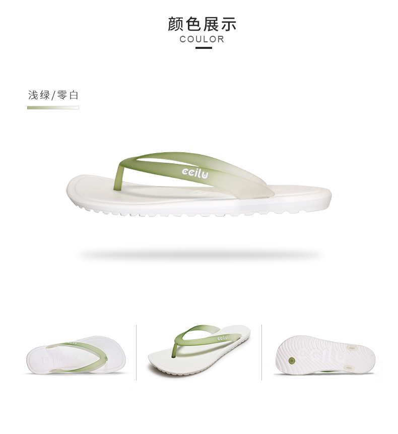 ccilu驰绿渐变色人字拖夏季新款男士外穿凉拖鞋防滑沙滩拖鞋潮流