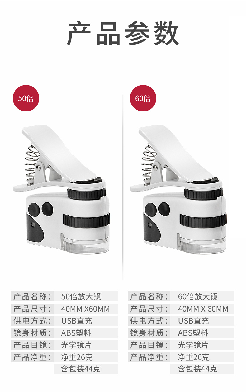 【爆款来袭】手机便携放大镜,50倍/60倍/100倍/200倍可选,一年保修,节锂电池供电,USB直插式充电,LED双色光源,方便出行,随时携带,操作简单耐用!【赠运费险】