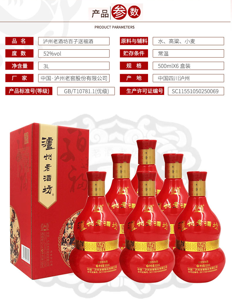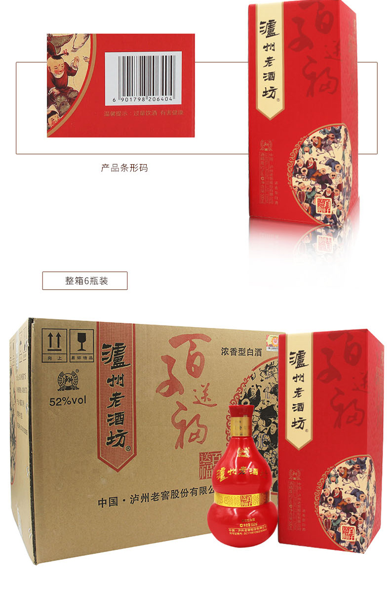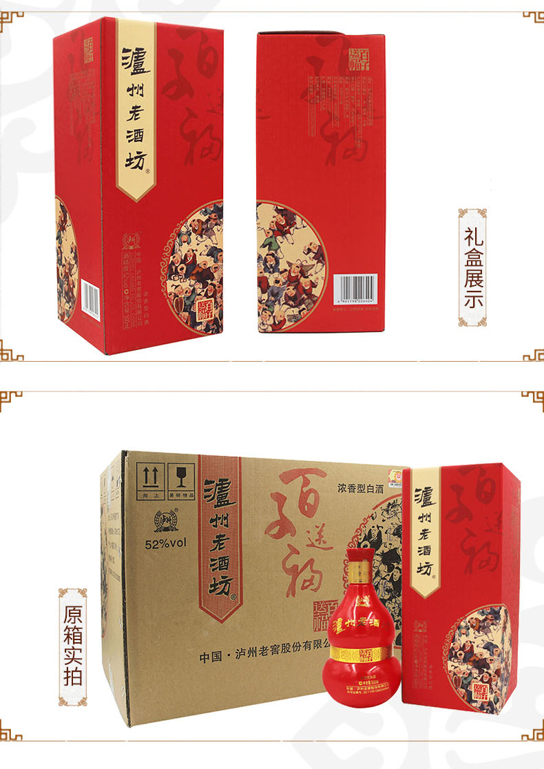 泸州老酒坊 52度百子送福500ml*6整箱浓香型白酒婚喜宴席送礼