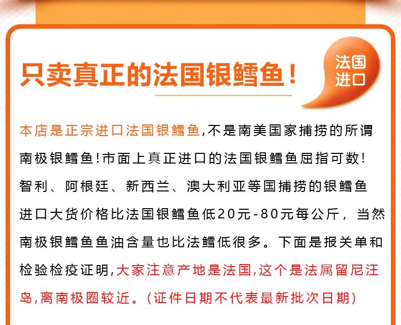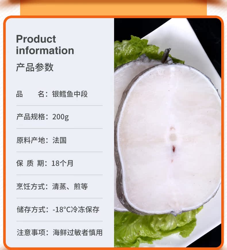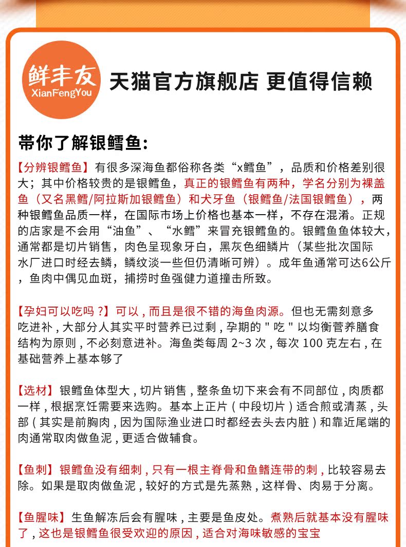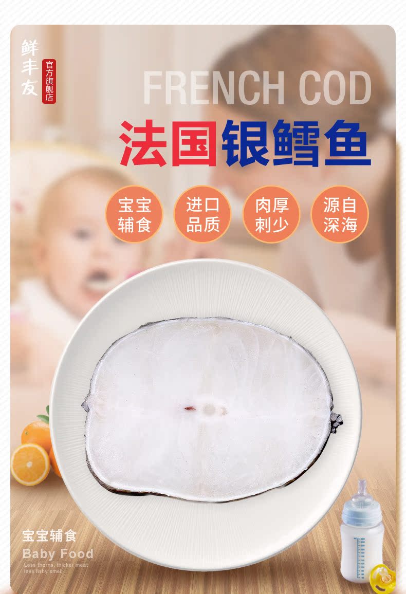 【鲜丰友】银鳕鱼 法国进口宝宝辅食婴幼儿 整条中段新鲜深海包邮