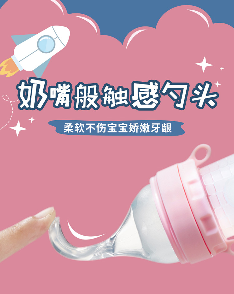 米糊勺奶瓶婴儿挤压喂养神器硅胶勺两用辅食工具果蔬水果咬咬乐