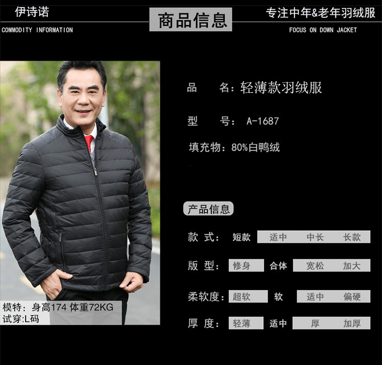 中老年轻薄羽绒服男老爸秋季40岁50中年人爸爸装冬装老人外套短款