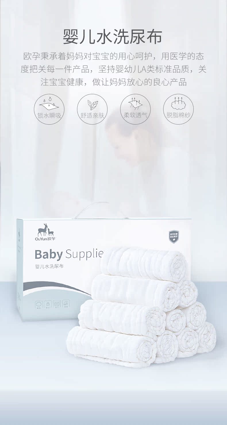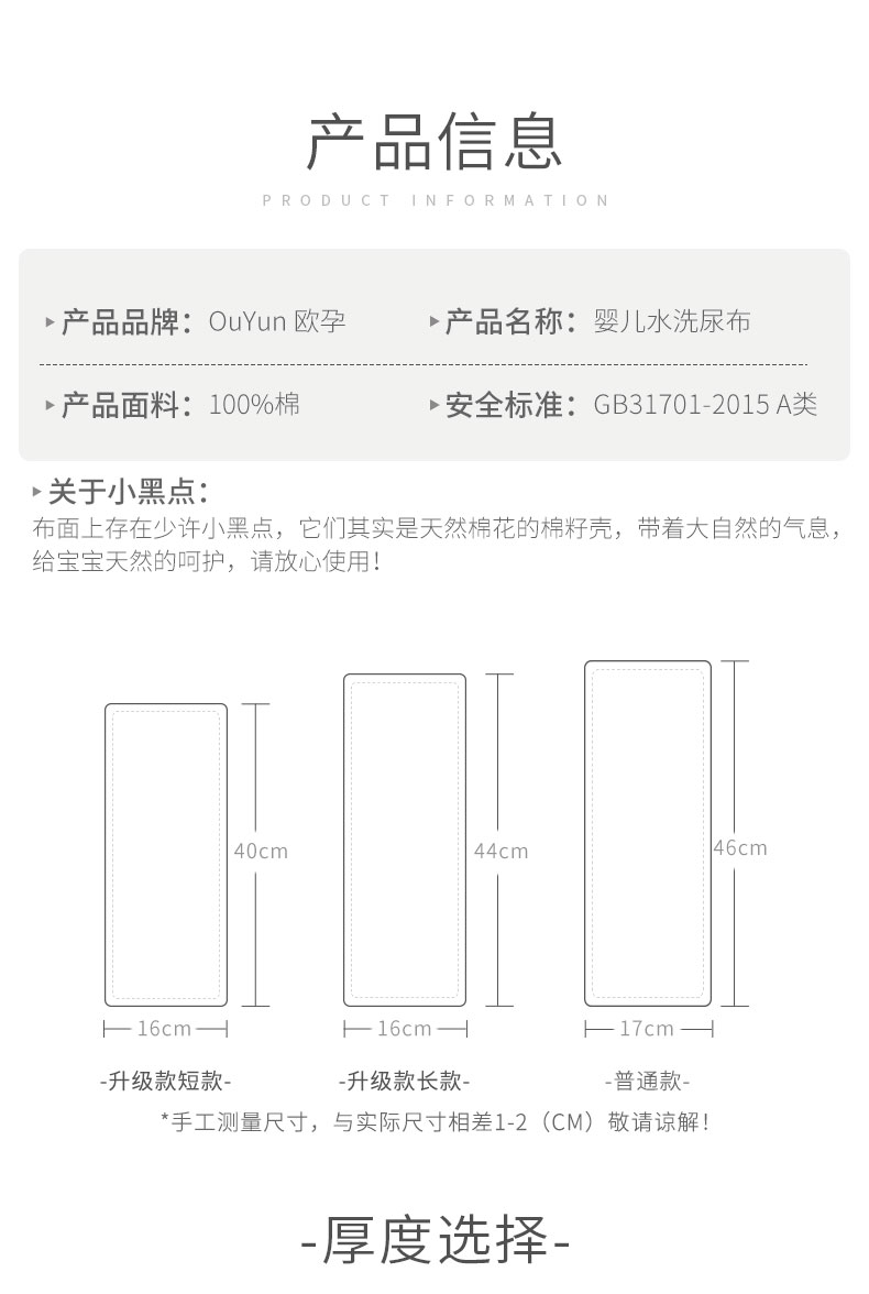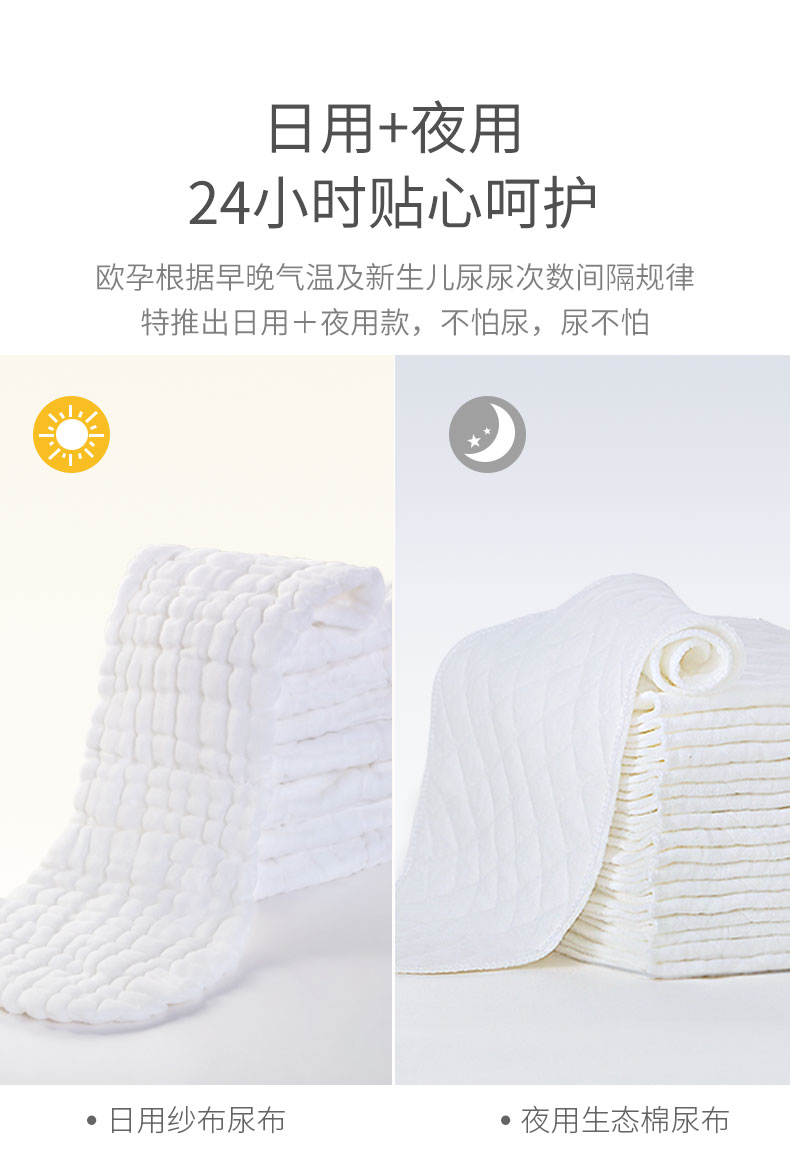 欧孕 尿布纯棉新生婴儿可水洗100%全棉纱布尿片婴儿超薄透气宝宝