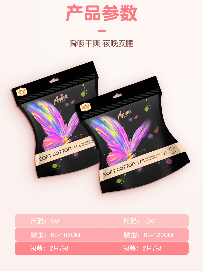 【宜婴安妮娜】大姨妈裤型卫生巾夜用内裤安心裤超薄安睡裤ML4包