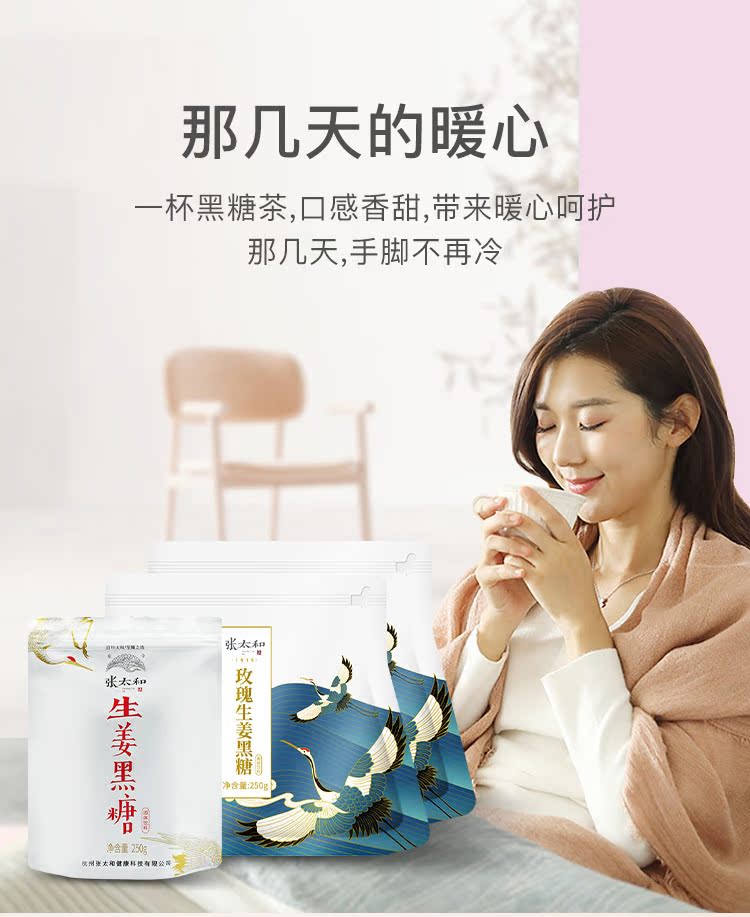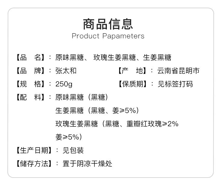 张太和 云南特产黑糖块 250g 玫瑰红糖速溶生姜体寒姨妈