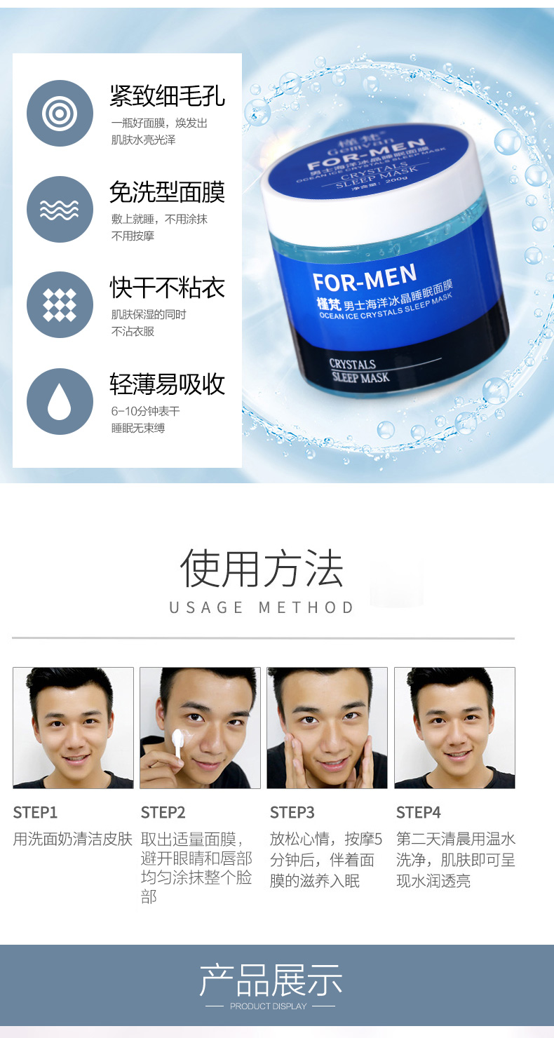 槿梵睡眠面膜男士免洗夜间清洁修复收缩毛孔补水保湿淡化痘印面膜