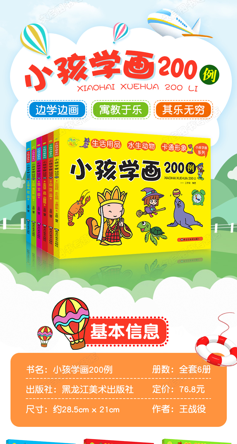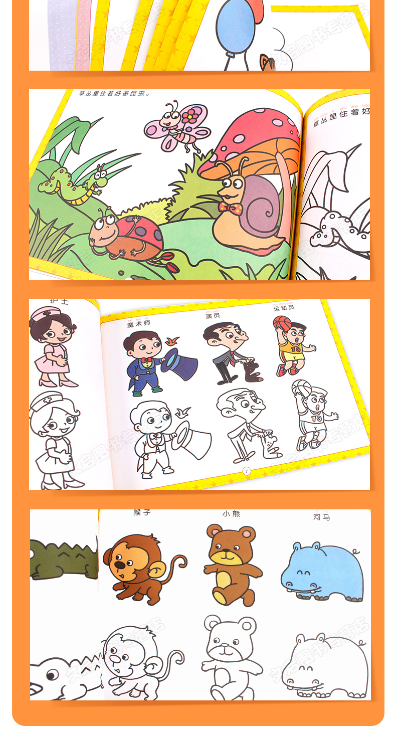 【启蒙涂色书】全套6本分步骤涂色,由易到难,循序渐进的教授宝宝涂色技巧,对宝宝学习涂色的帮助很大!色彩鲜艳,图案生动有趣!
