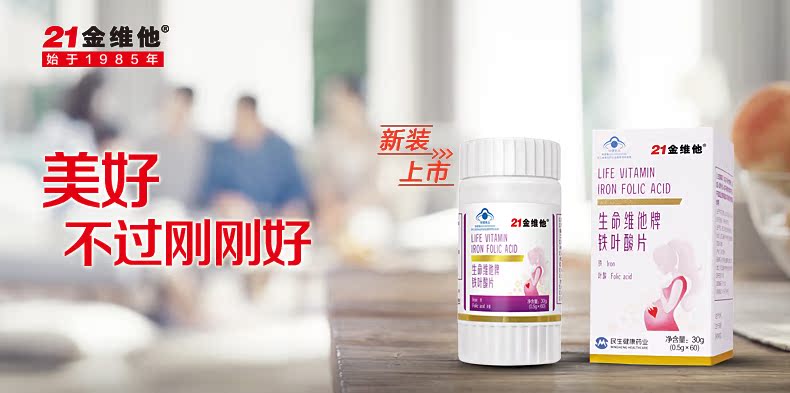 21金维他铁叶酸片补铁孕妇复合维生素铁质叶酸天猫备孕成人60片