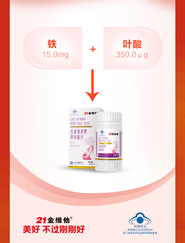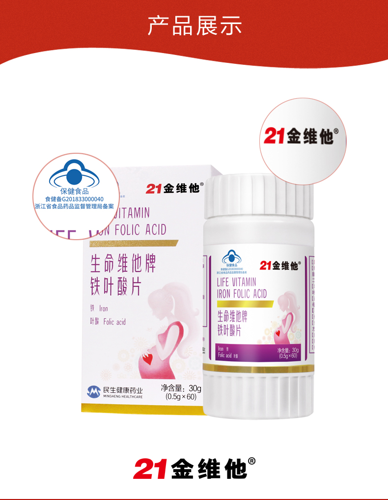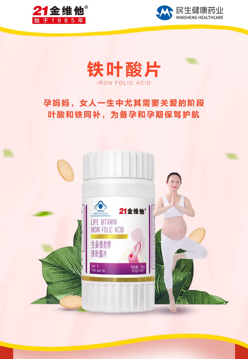 21金维他,民生健康药业,孕妈妈标配!铁叶酸片60片*1罐,补充孕妇,乳母所需铁,叶酸,为备孕和孕期保驾护航!【赠运费险】