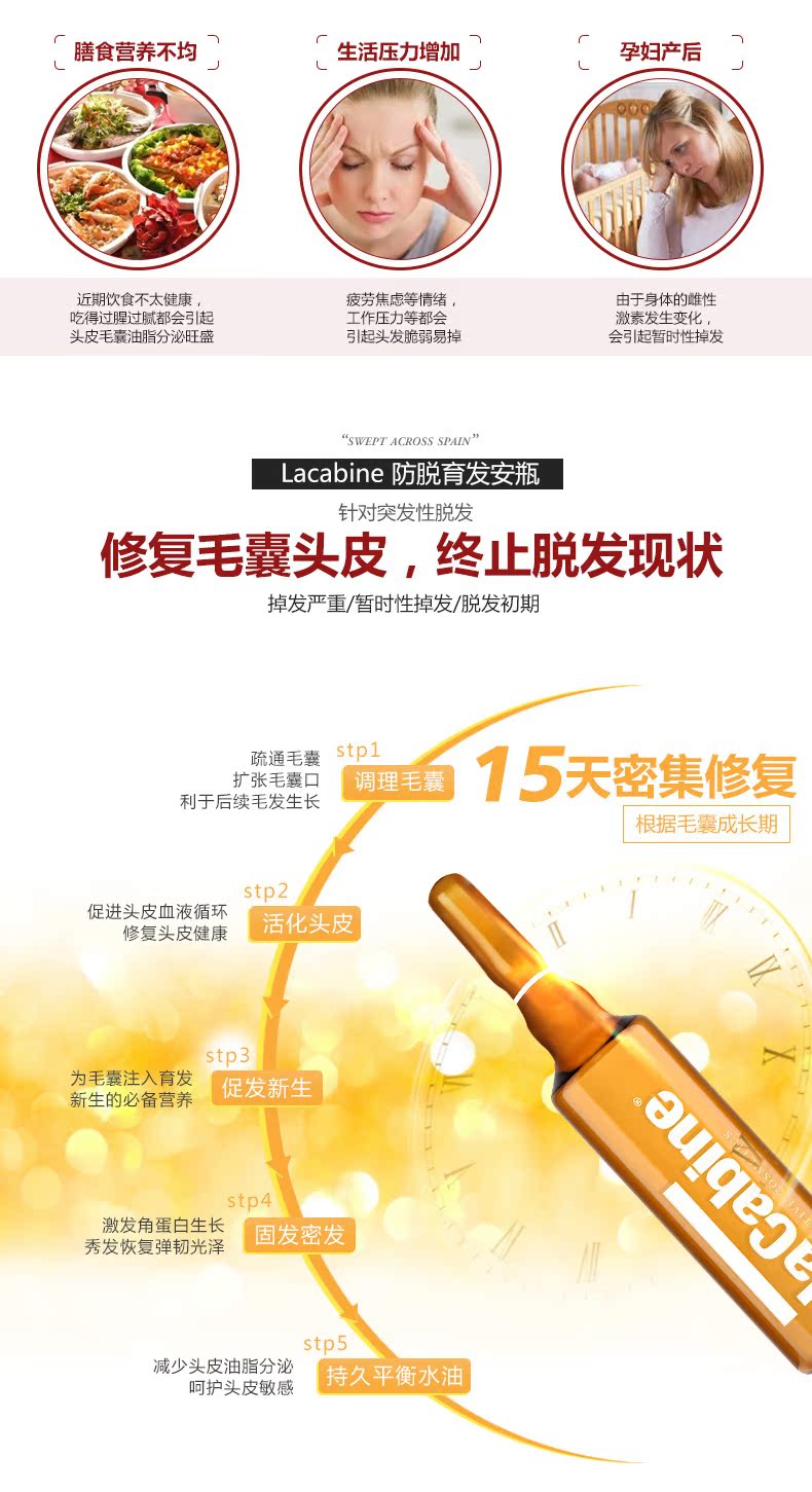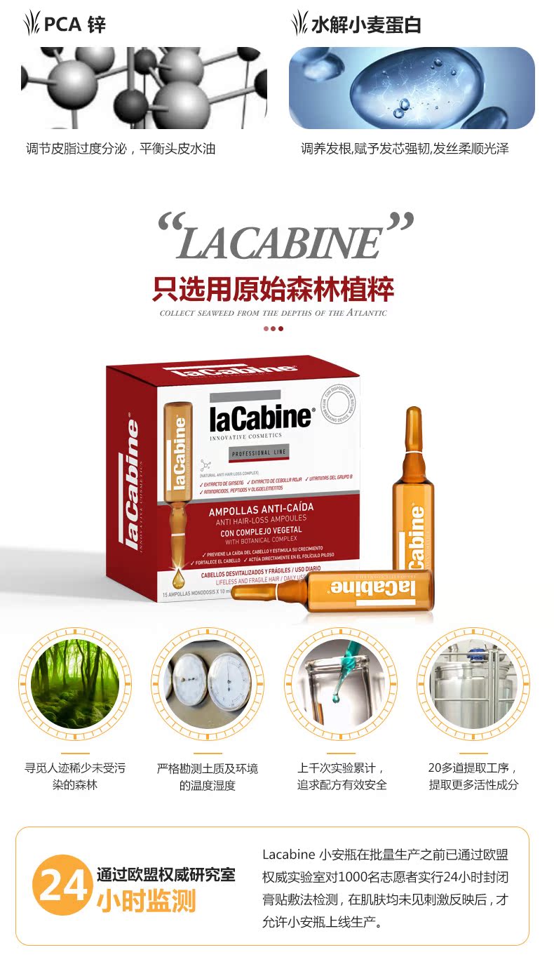 西班牙lacabine防脱精华安瓶增发生发密发男女防脱发掉发15*10ml