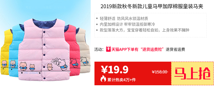 儿童马甲加厚背心2019秋冬新款男女童坎肩背心男女宝宝外套棉马夹