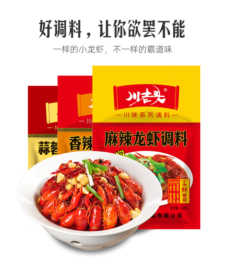 川老头 麻辣小龙虾调料180g商用秘制配方香辣龙虾料 蒜蓉龙虾调料