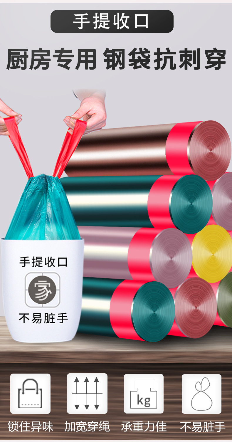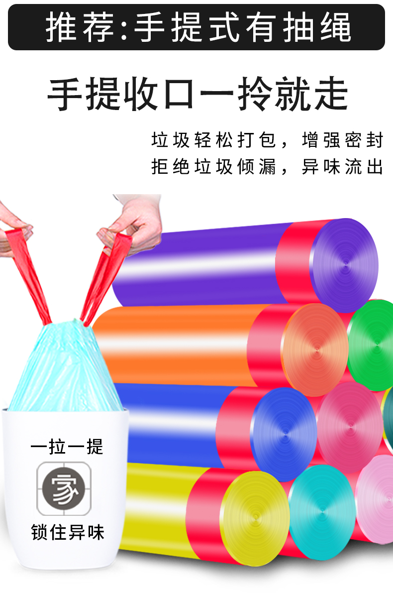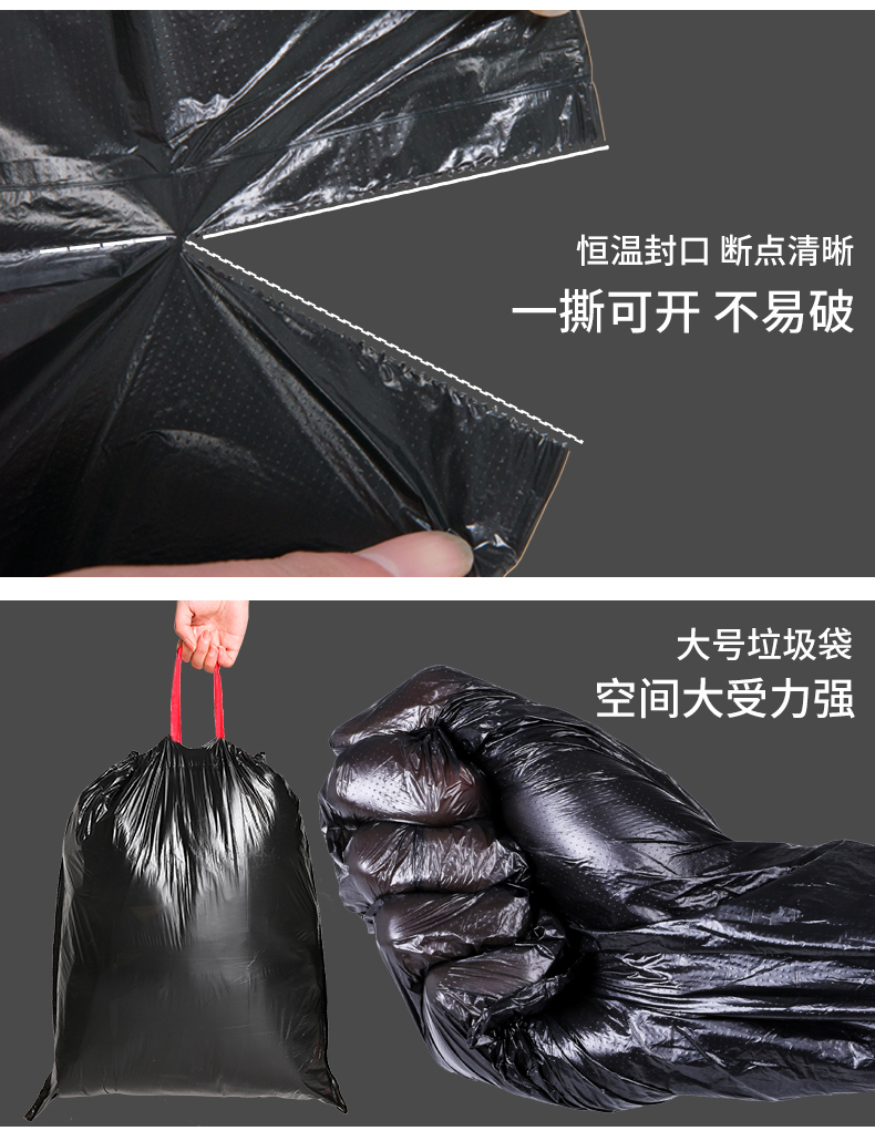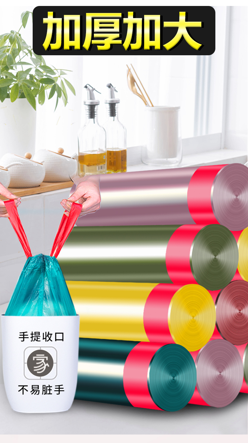 垃圾袋家用手提式加厚黑色宿舍用学生大号拉圾塑料袋抽绳自动收口