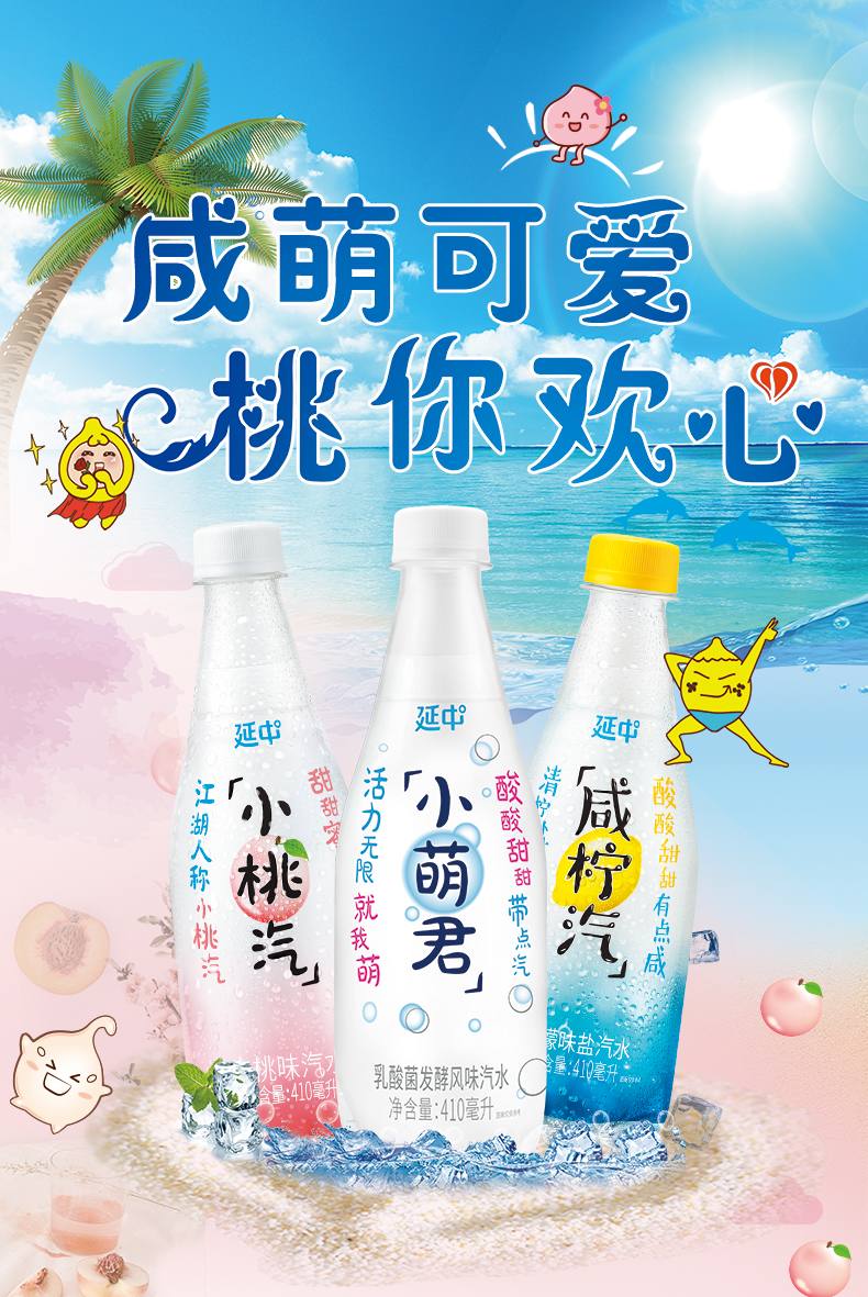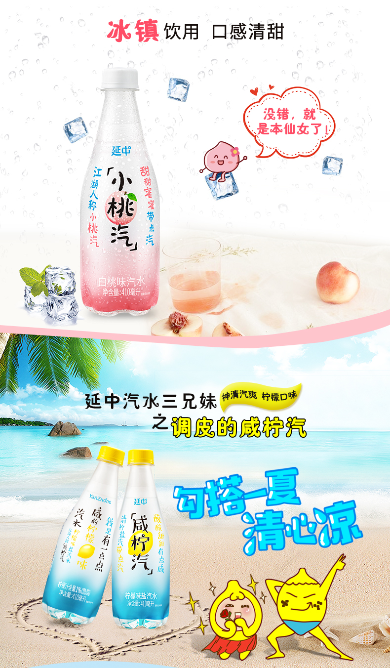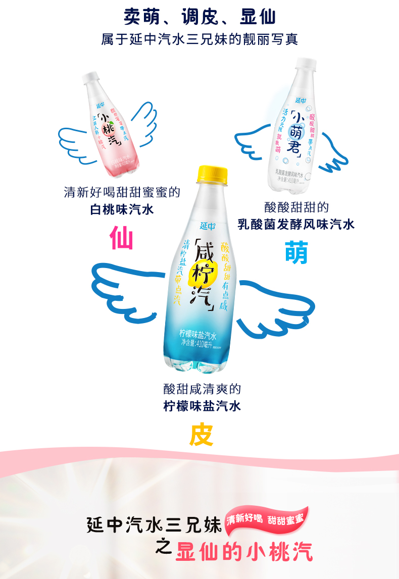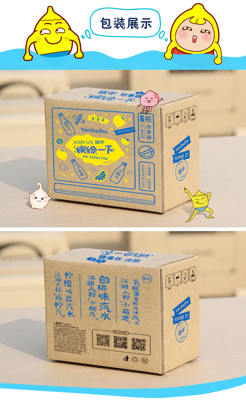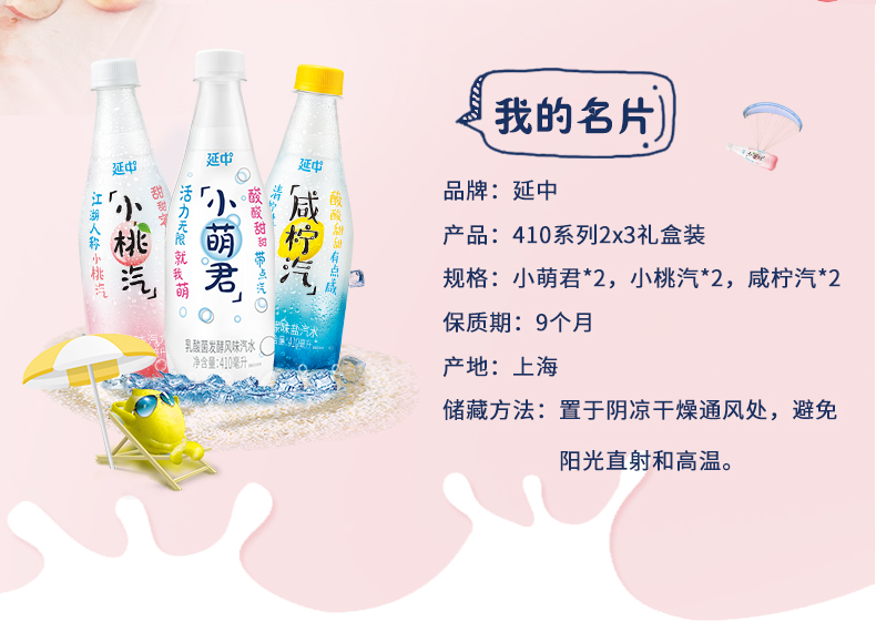 【延中】 410ml*6瓶/箱 礼盒白桃柠檬乳酸菌口味碳酸饮料汽水饮品