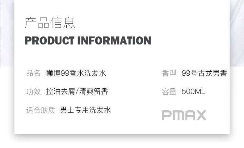 500ml狮博男士专用洗发水,优雅香氛,焕发男性魅力,古龙香水气味,给男士清爽沐浴的体验!
