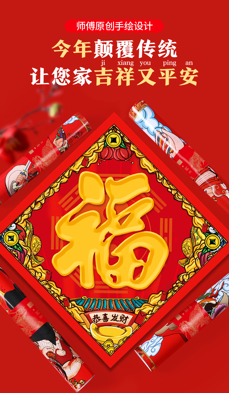 【新年红红火火】2019春节大礼包,春联套装、门福,送礼佳品、春节礼品,采用特殊工艺,高端大气,原创意年品,买家5分好评!【赠运费险】