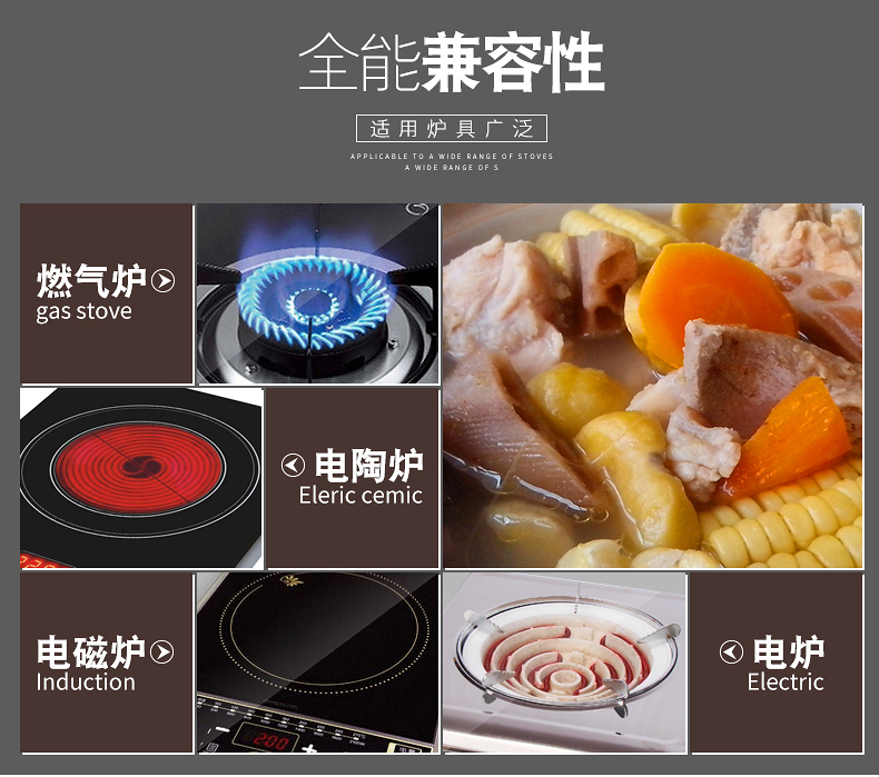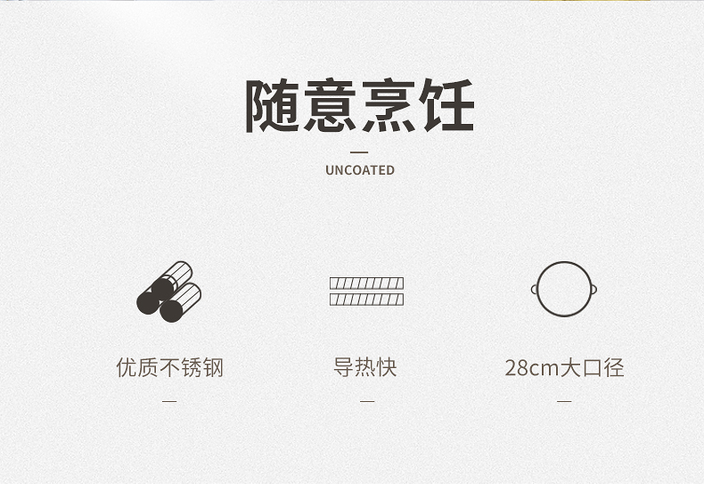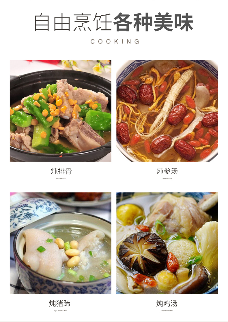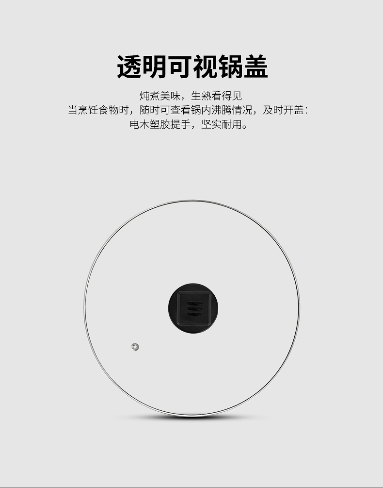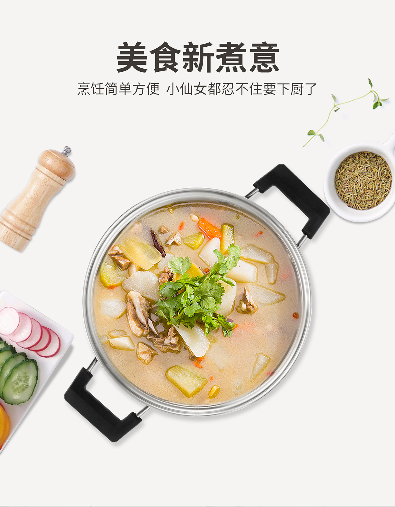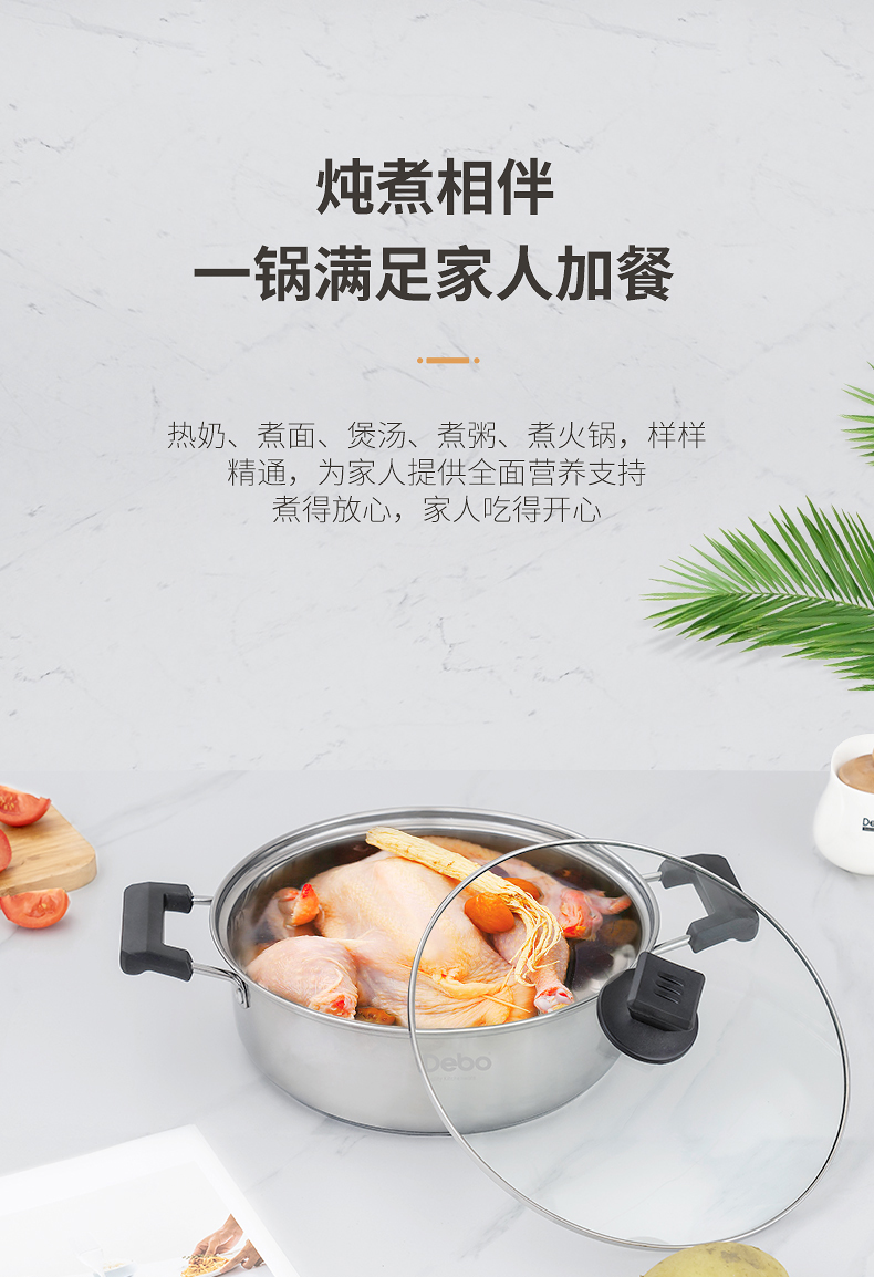 ①一锅多用,【煲汤、熬粥、焖肉、煮面辅食】样样精通。②采用优质不锈钢,锅体表面采用【镜面抛光】如镜子般光滑,耐脏易清洗,③【防滑波纹低】平均受热。④【钢化玻璃盖子】可视烹饪更安心,电木防烫