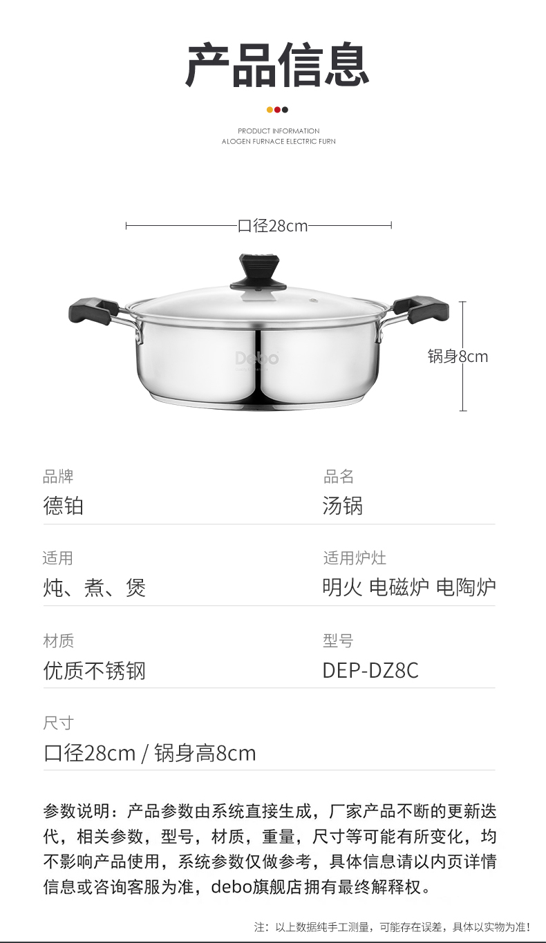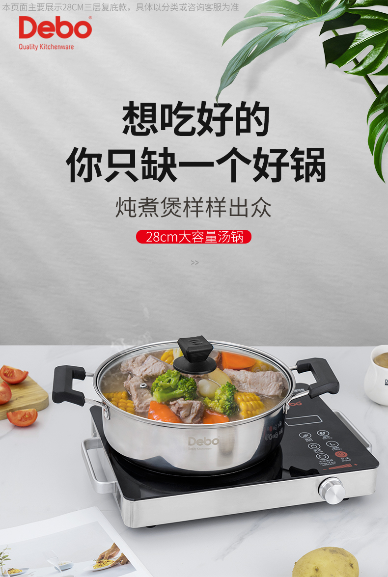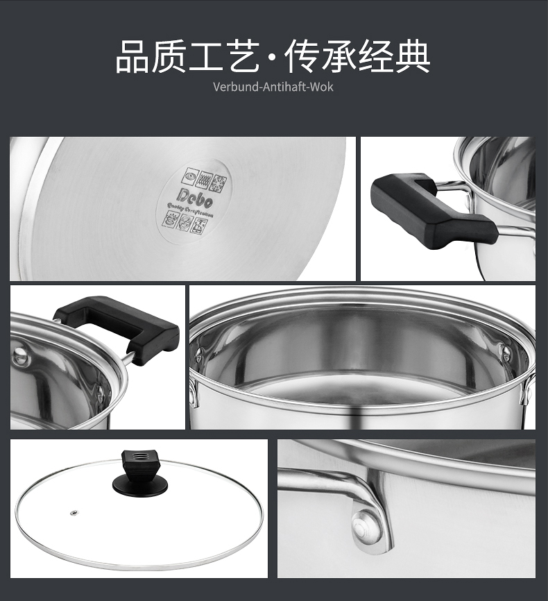 德国Debo不锈钢汤锅家用燃气电磁炉加厚煮锅炖锅煮面煮汤锅
