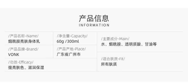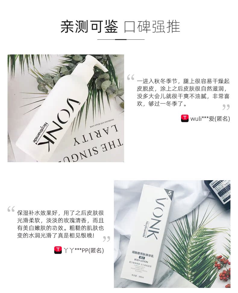 VONK烟酰胺美白身体乳男女保湿滋润秋冬补水香体持久留香润肤乳