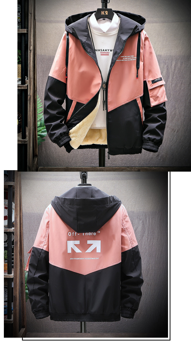 男士秋装上衣加绒加厚外套秋冬款韩版潮流撞色短款工装夹克衫男装
