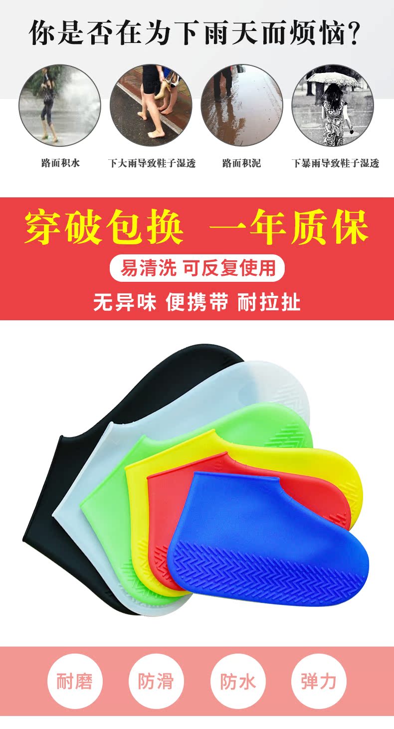 硅胶鞋套防水雨鞋雨天防滑加厚耐磨成人便携防雨水鞋套户外雨靴