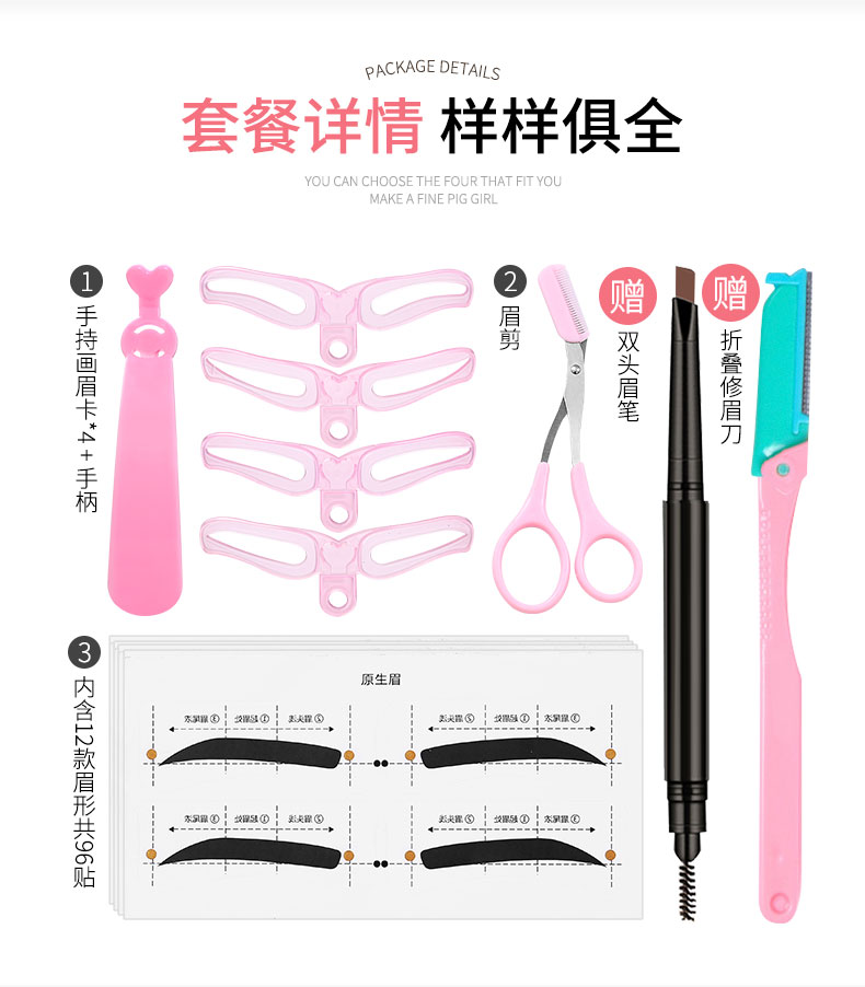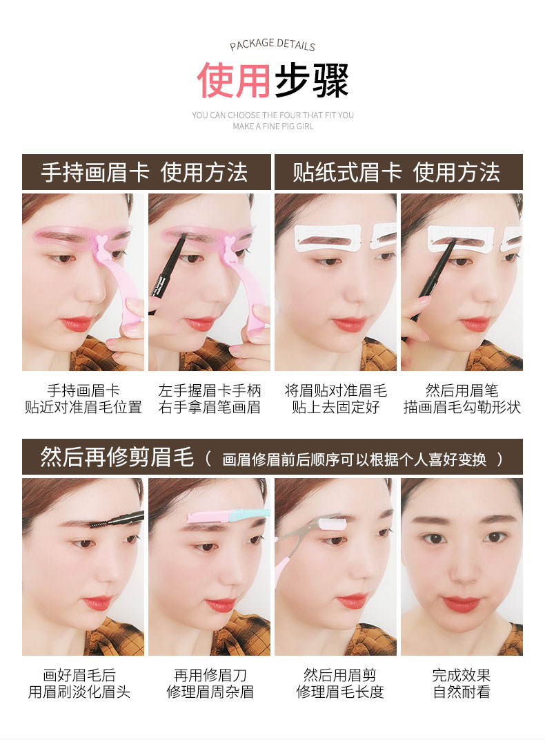 抖音网红同款!4款手持眉卡+1支眉笔,新手画眉套装!操作简单,手扶or佩戴,一笔快速成型,搭配眉笔,轻松打造自然眉形!再也不怕手残了