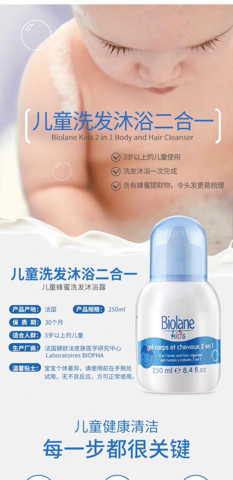 法贝儿儿童洗发沐浴二合一 蜂蜜洗发水沐浴露250ml温和清洁柔顺