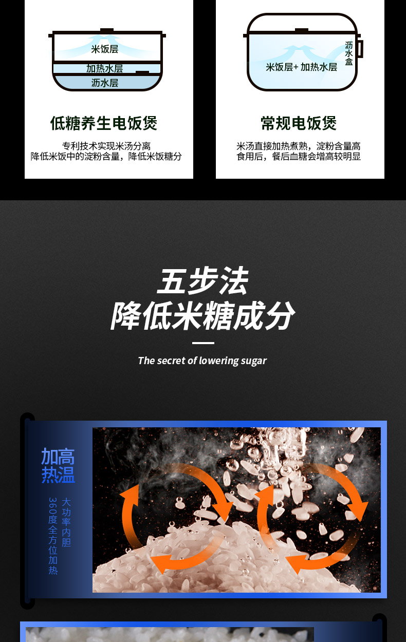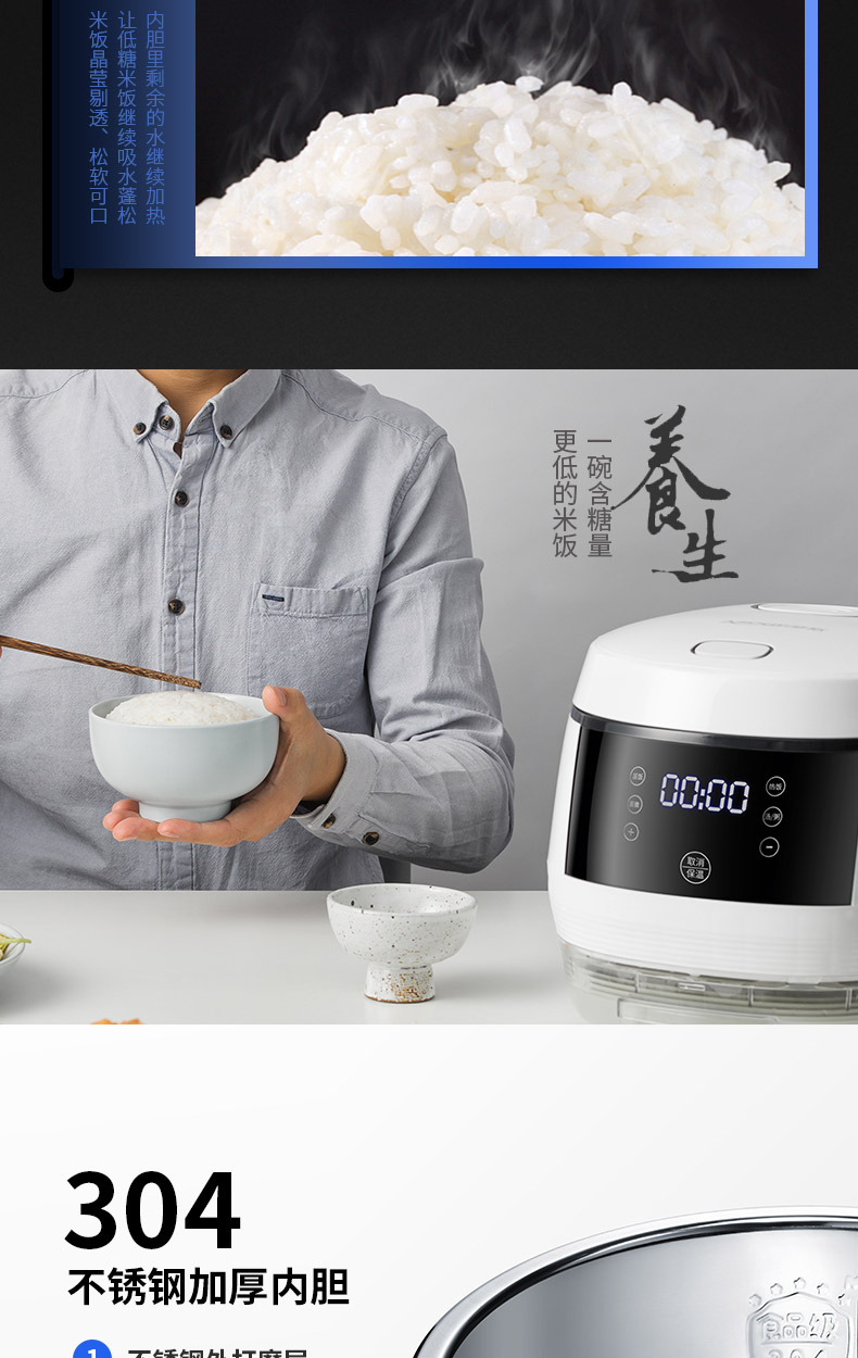高档电饭煲,米汤分离,健康脱糖,让米饭更香更饱满可口,304不锈钢加厚内胆,无毒害,不粘性,便捷操作,养生饭煲,为您呵护全家人的健康【赠运费险】
