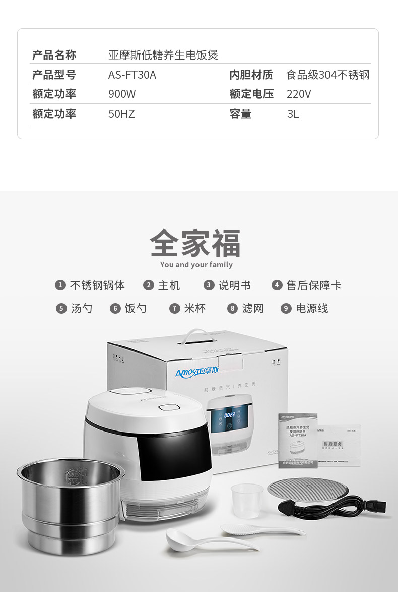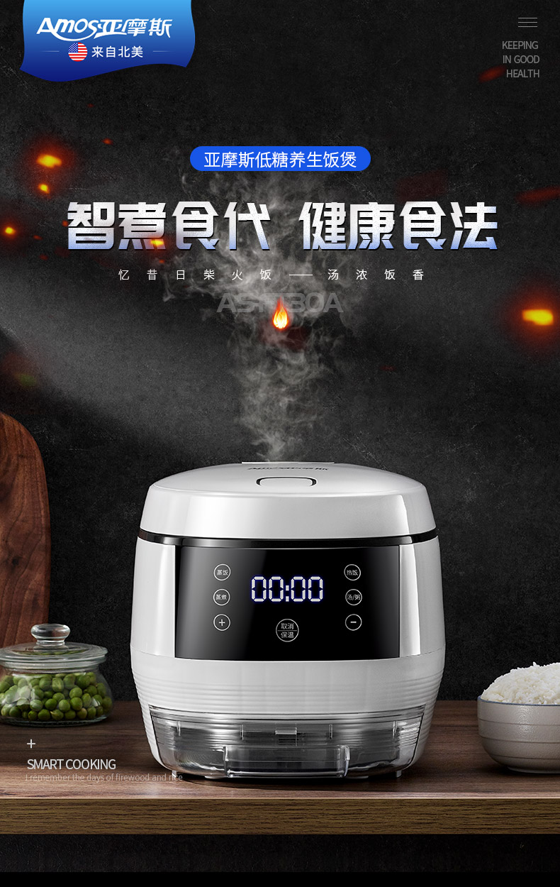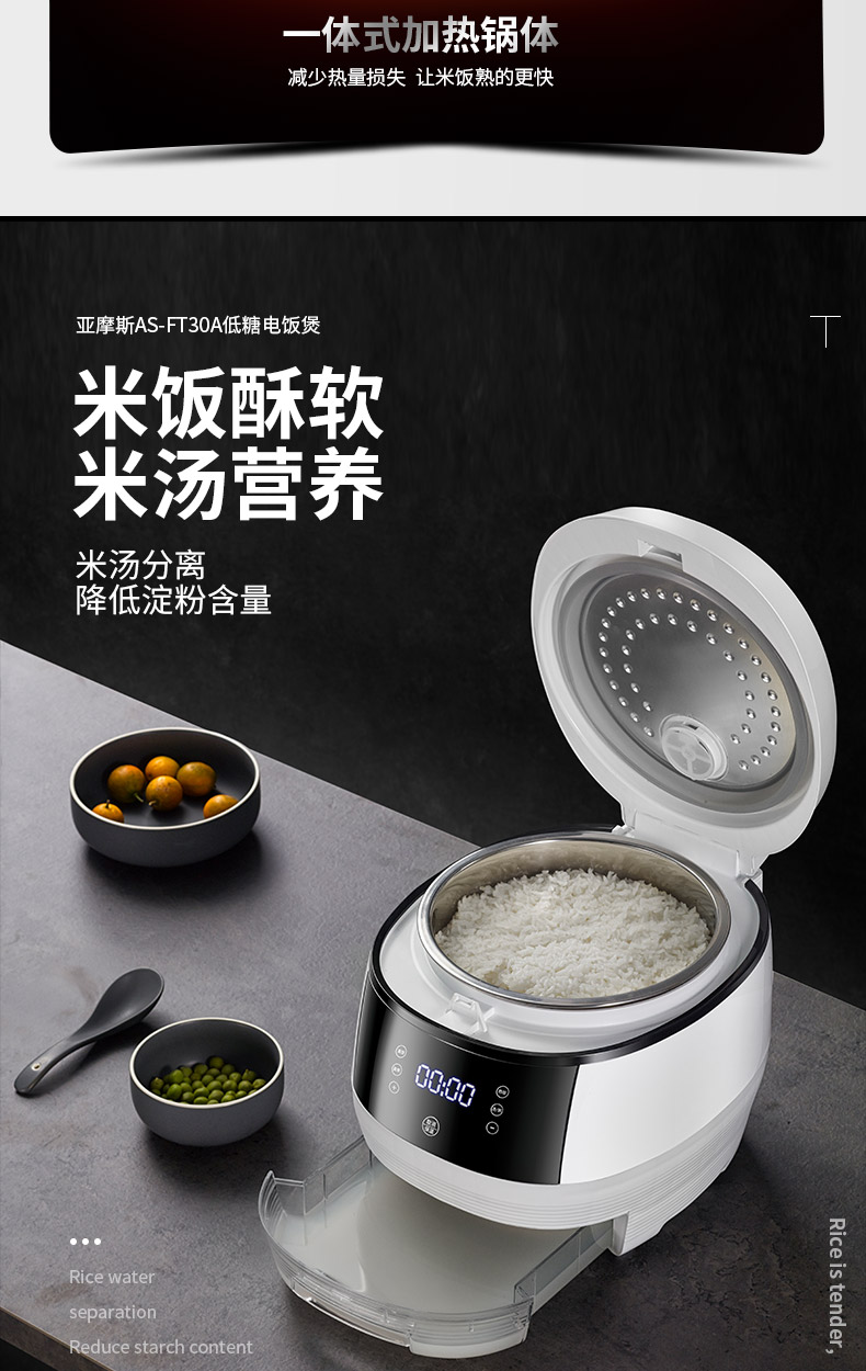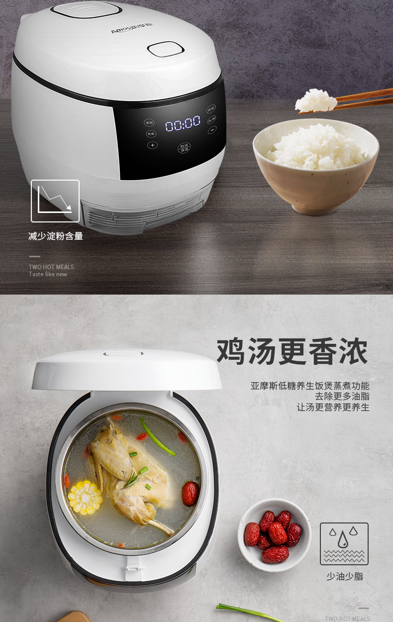 亚摩斯脱糖电饭煲家用全自动智能多功能降糖低糖米饭养生锅小型3L